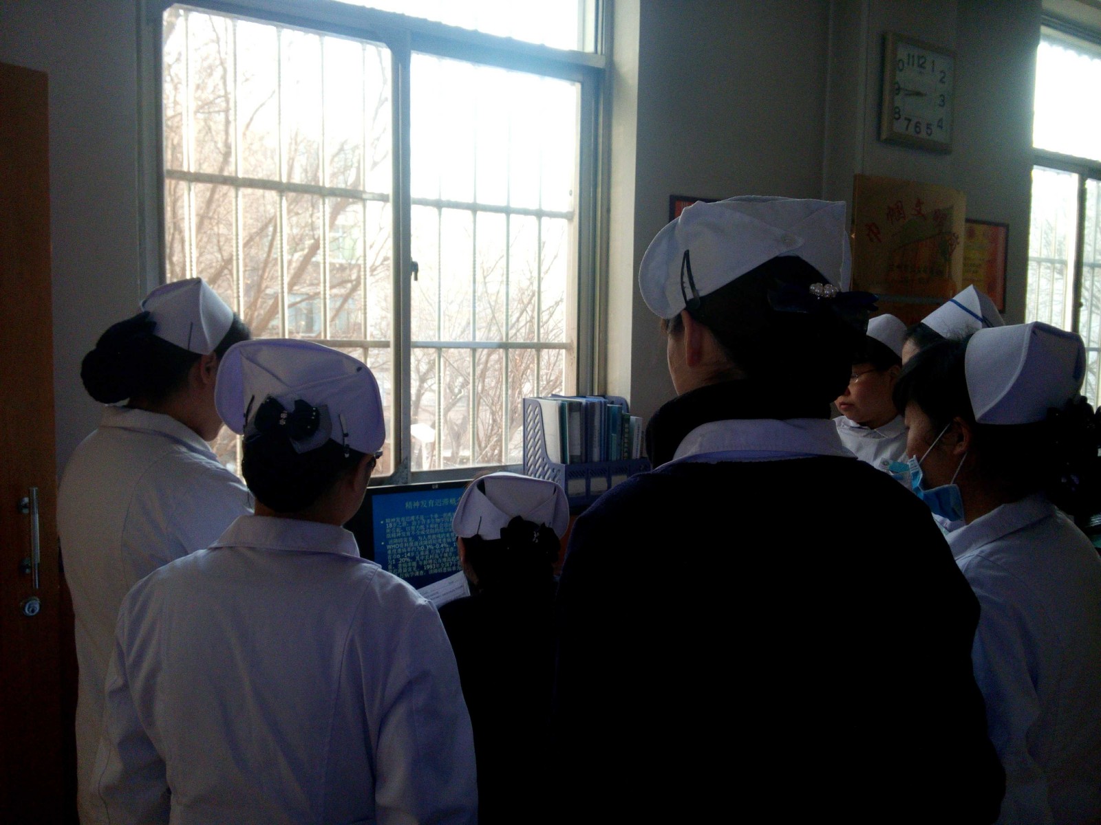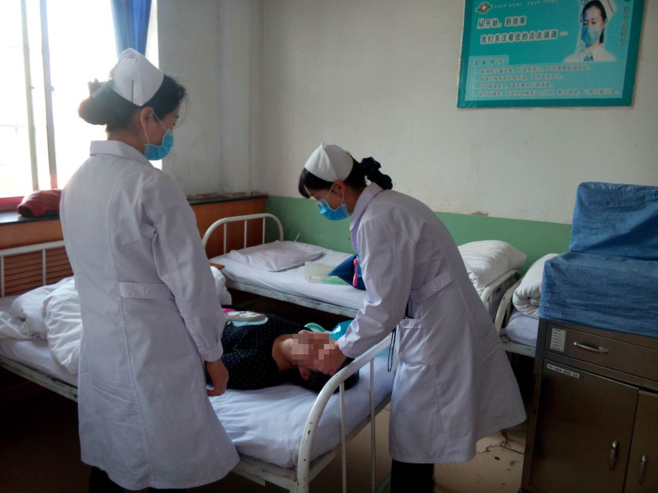 我院四病区护士在护士长的带领下进行业务理论知识的学习及急救技能的演练