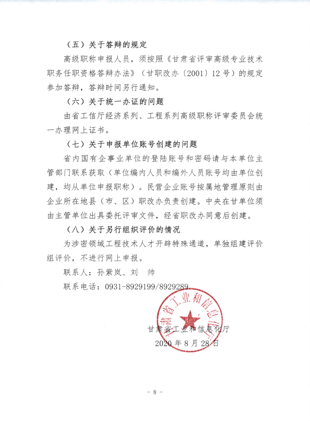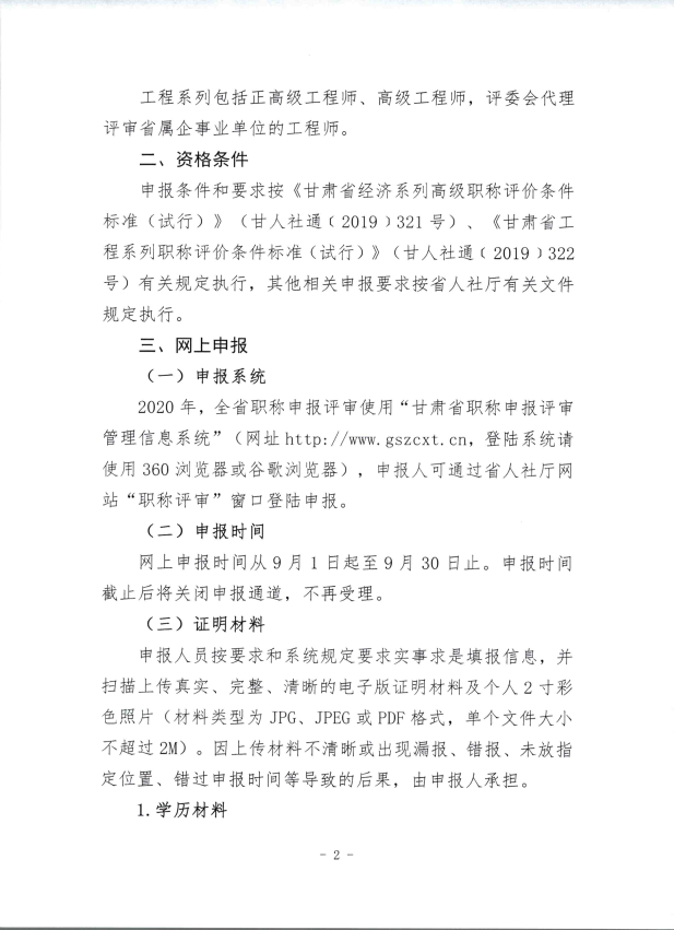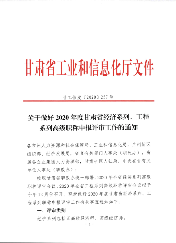 关于做好2020年度甘肃省经济系列、工程系列高级职称申报审评工作的通知
