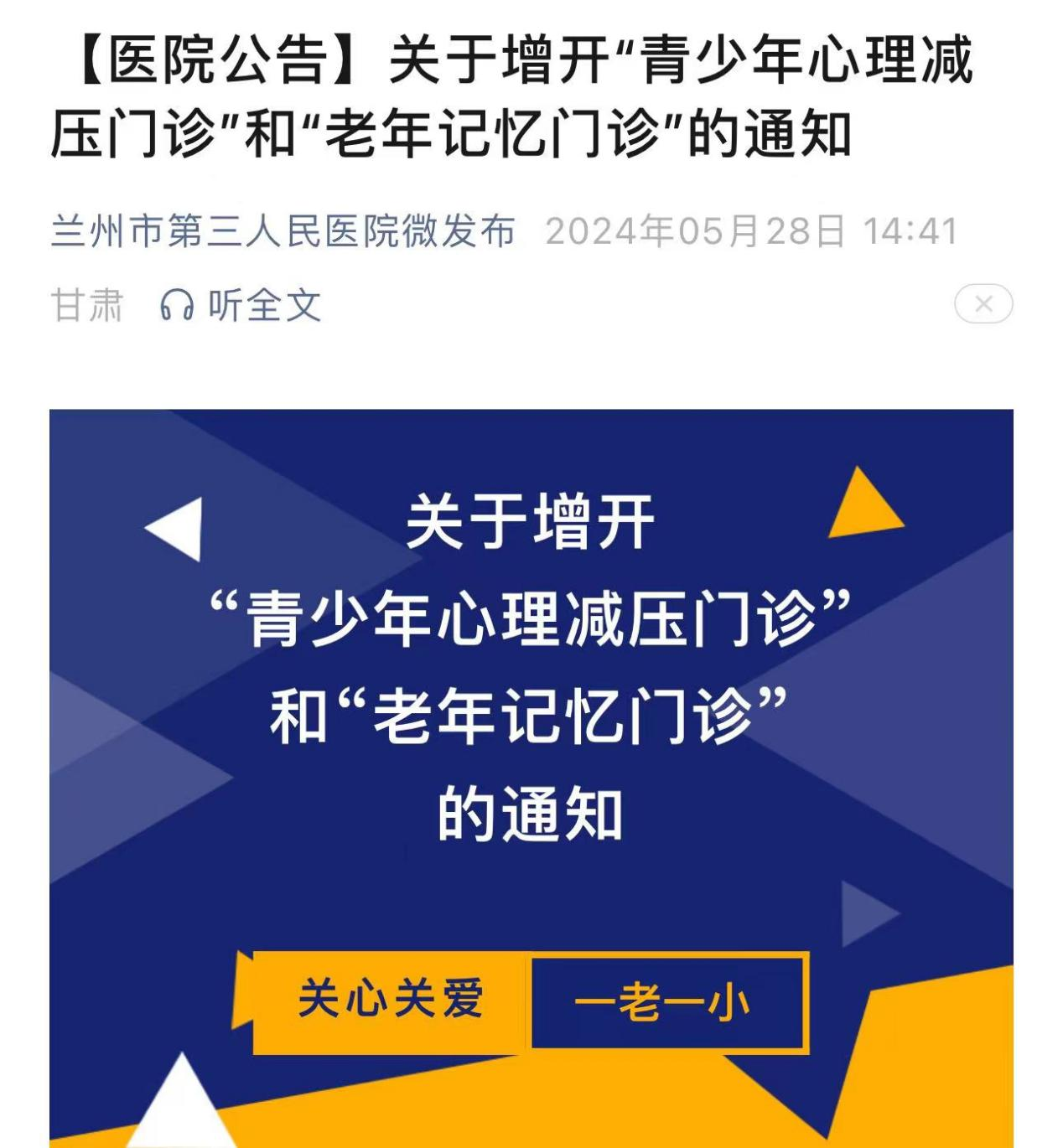 选派医务人员前往榆中县第三人民医院、红固区妇幼保健院开展对口帮扶工作;开展“健康科普知识进机关、进学校、进企业、进社区、进乡村、进家庭”为主题的“六进”健康义诊服务暨科普宣教活动十余场次,进一步提升市民群众的健康素养,普及心理健康知识;持续开展患者家属大接访活动,及时反馈患者在院治疗情况。