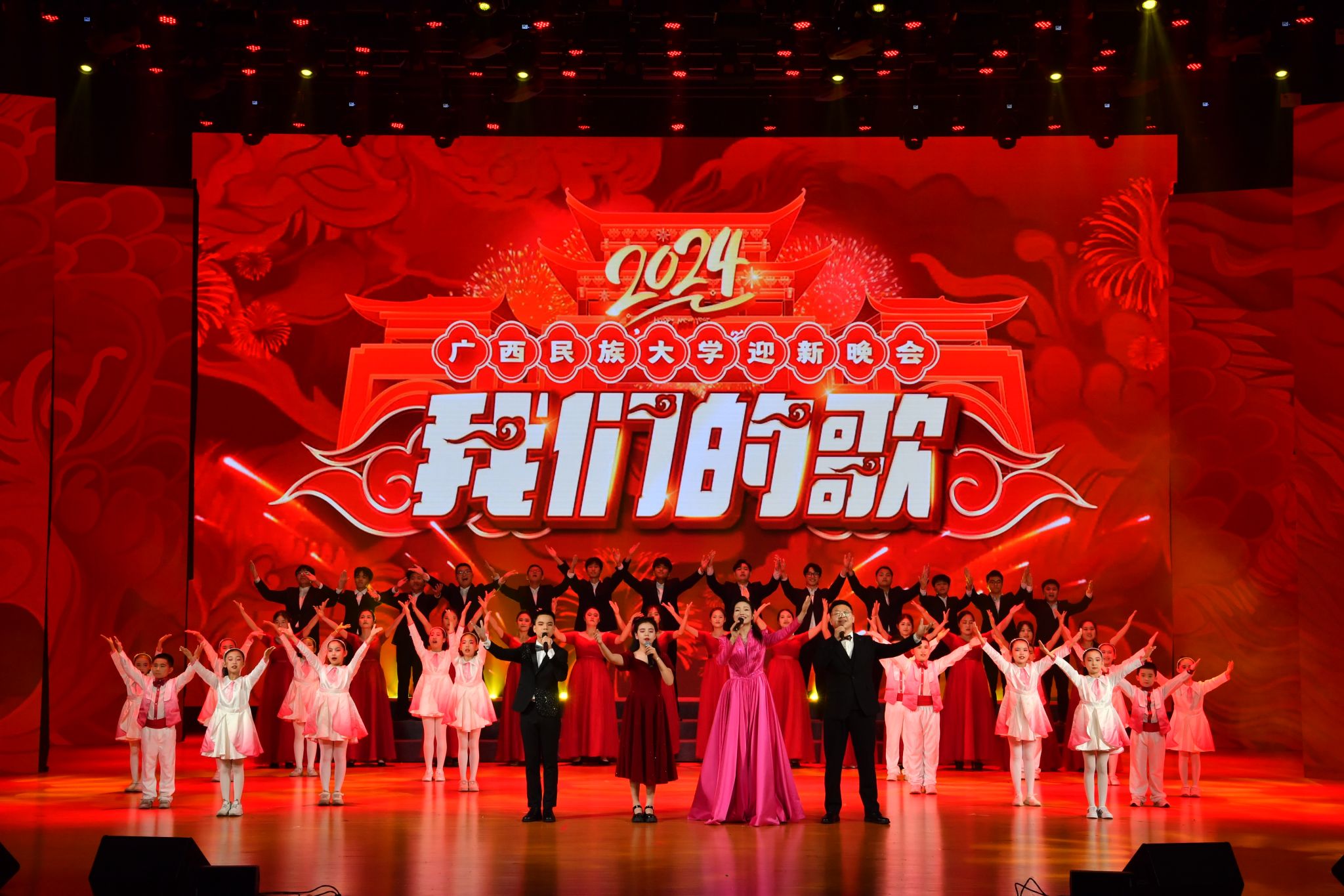 广西民族大学“我们的歌”2024年迎新晚会现场