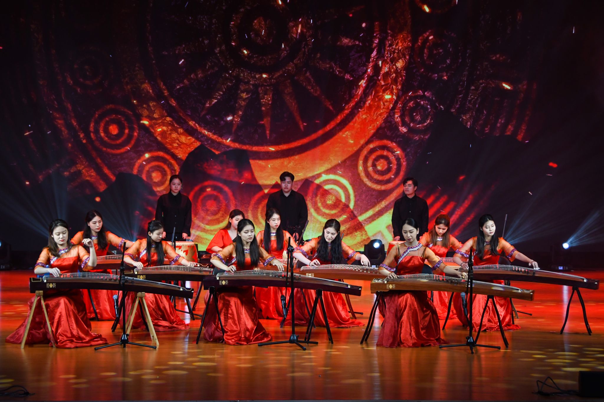 不忘初心、牢记使命。第一乐章“我们的根脉”奏响坚守热爱、传承文化的旋律。学校退休教职工们带来的原创作品《回家,我要回家》在高昂有力的歌声中表达对祖国统一的强烈愿望。民大附小的同学们带来器乐合唱《红豆少年》,清亮的童声传递着传承中华优秀传统文化的精神,彰显中华少年的风采。校艺术团带来舞蹈《传响》,舞者在铿锵的鼓点和坚定的舞步中将文化与艺术紧密结合,传递着信仰的力量与光芒。教职工带来的歌舞《理想照耀中国》启示着我们理想的光辉是指引民族伟大复兴的方向。
