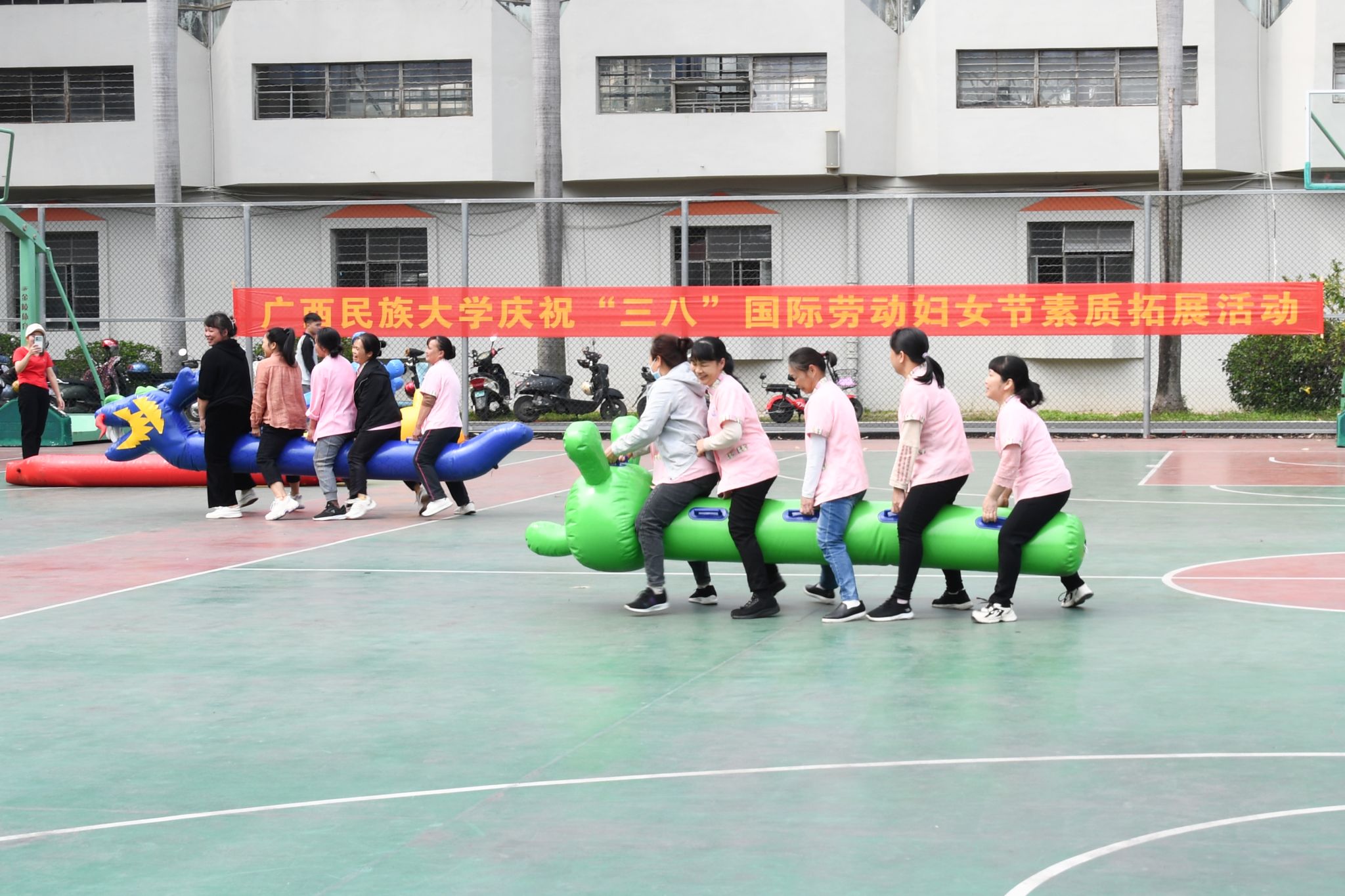 【大学生通讯社报道】3月7日下午,广西民族大学在相思湖校区大丰篮球场开展“三八”国际劳动妇女节素质拓展活动。校党委副书记陈铭彬出席活动,并向全体女教职工致以节日问候。
