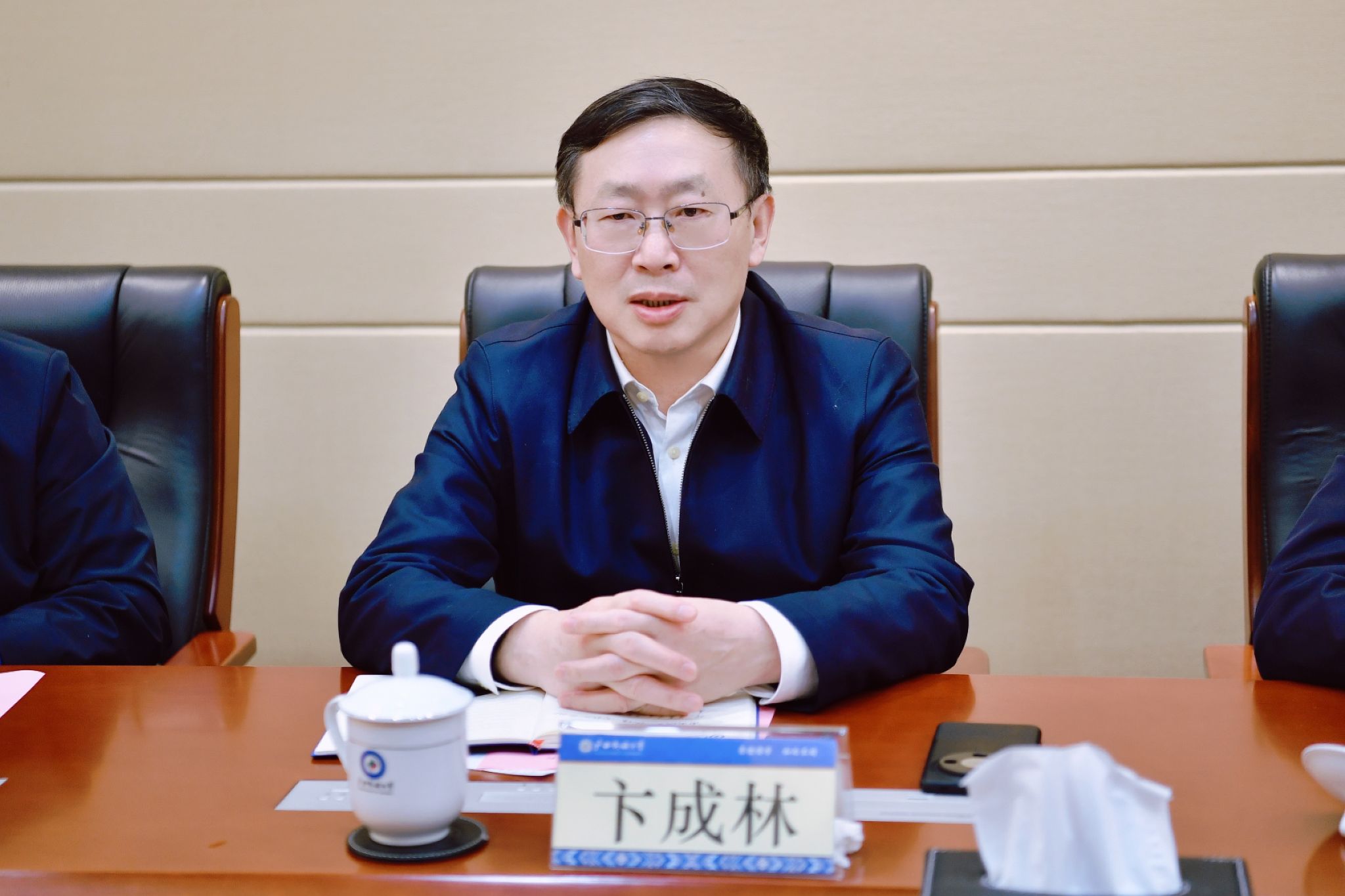 3月12日,广西民族大学党委书记卞成林会见来校交流的南方有色集团党委书记刘建平一行。学校党委副书记邓国彬,副校长姜明国及有关单位负责人参加座谈。