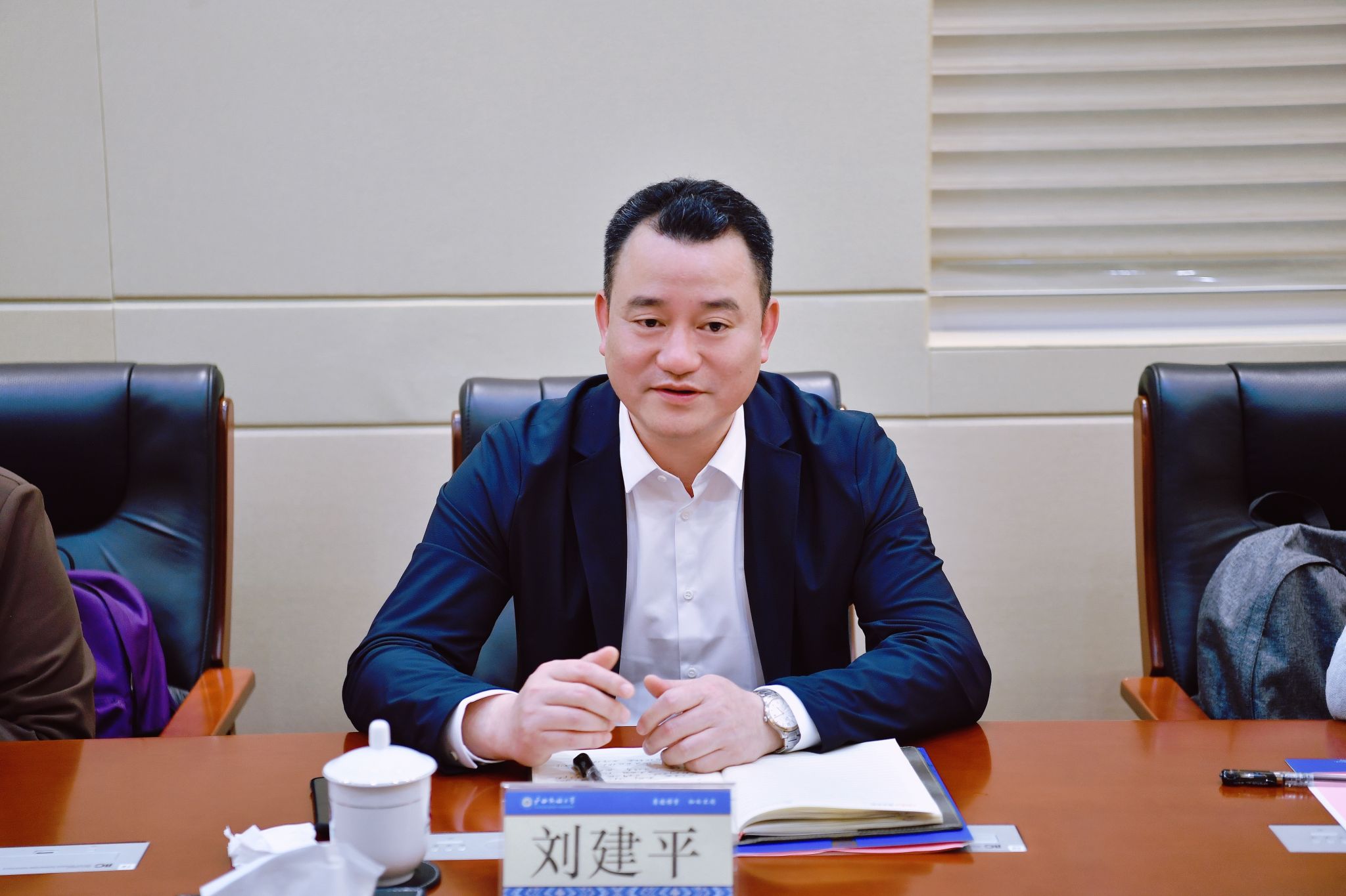 卞成林对刘建平一行的到来表示欢迎。卞成林表示,广西民族大学办学特色鲜明,学风优良,始终坚持服务国家“一带一路”倡议和广西开放开发大局,充分发挥面向东盟开放合作的前沿作用。民大学子充分发挥“扎根”精神和“石榴籽”精神,以扎实的专业基础、务实的工作作风、吃苦耐劳的优秀品格为促进民族团结进步和广西经济社会发展作出了积极贡献,希望与南方有色集团在学生实习实践、毕业生就业方面加大合作力度,推动毕业生高质量充分就业。
