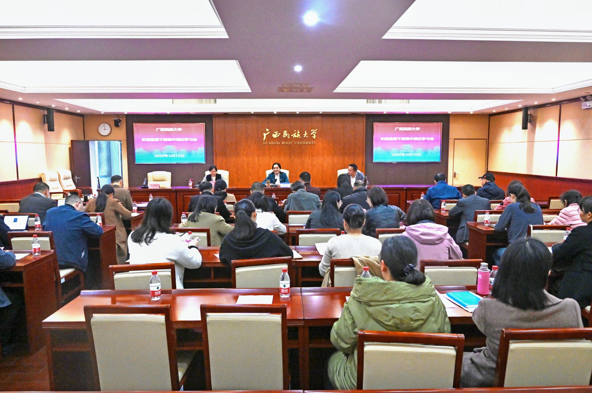 【大学生通讯社报道】3月13日,广西民族大学在办公楼212室召开纪检监察干部集中理论学习会。自治区纪委监委驻广西民族大学纪检监察组组长,学校党委副书记、纪委书记韦雪芳主持会议。校纪委委员、院级纪委书记、专职纪检干部、院级纪检委员参加学习。