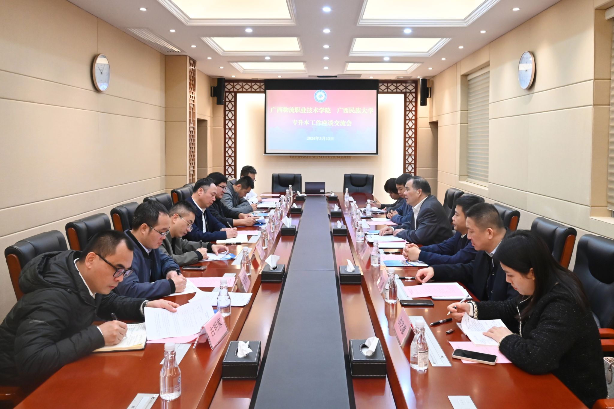 【广西物流职业技术学院到我校洽谈专升本招生工作】3月13日,副校长何立荣与广西物流职业技术学院院长朱海强一行洽谈专升本招生工作,何立荣表示,我校重视对高职高专人才引入,将根据学校专业设置的实际情况,大力支持广西物流职业技术学院专升本工作。双方就理工科专业专升本指标、学生就业情况等进行交流并就专升本人才培养方案进行探讨。(图/李玟静 文/甘叶 李玟静 吴永霞 初审/马可靠 编/朱云芬 校/王馨 复审/荣子卿 终审/王文娟)