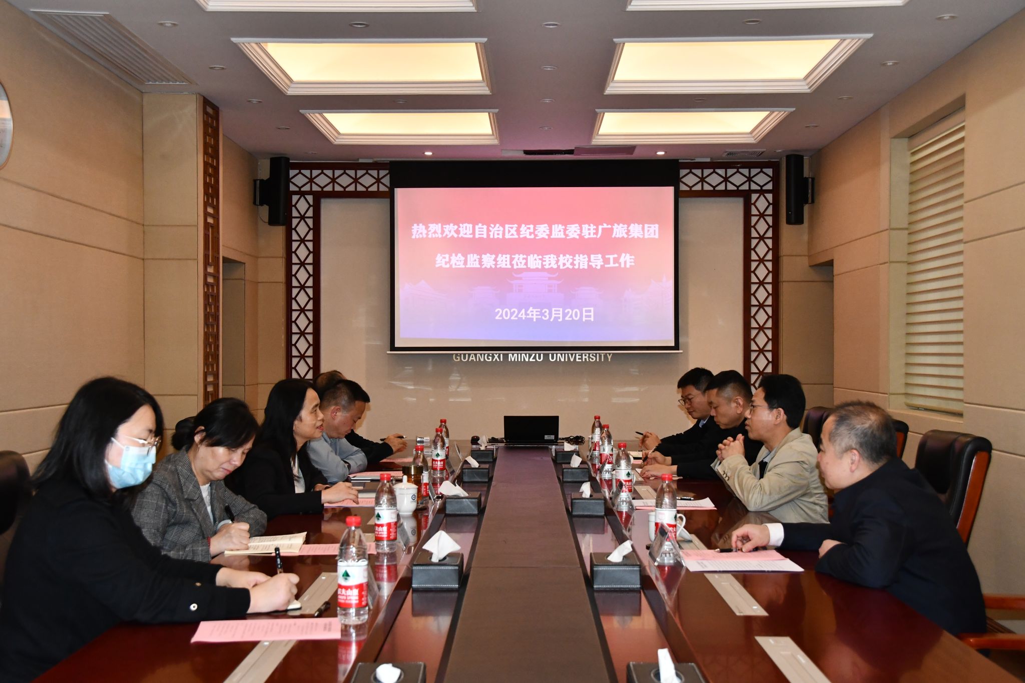 【自治区纪委监委驻广旅集团纪检监察组到广西民族大学调研】3月20日,自治区纪委监委驻广西民族大学纪检监察组组长、学校党委副书记、纪委书记韦雪芳与自治区纪委监委驻广旅集团纪检监察组一行进行座谈交流。双方就推动派驻改革工作、开展清廉建设、履行监督执纪问责职责的主要做法及经验进行交流。