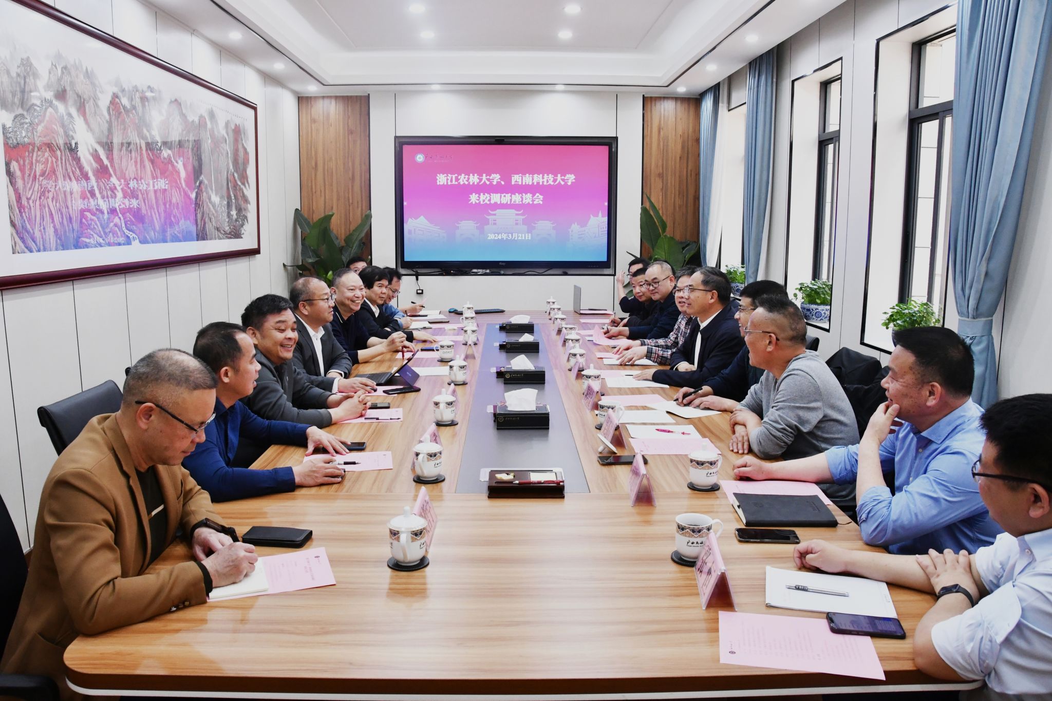 【浙江农林大学、西南科技大学到广西民族大学调研】3月21日,副校长姜明国与浙江农林大学副校长胡祖吉,西南科技大学后勤服务集团总公司党委副书记、纪委书记袁明座谈交流。姜明国介绍我校“绿色学校”创建的具体做法、房产资源精细化管理和有偿使用办法、校园食品安全排查整治专项行动措施和长效化机制建设、校友会工作创新举措、后勤保障工作创新及后勤劳动教育开展情况。