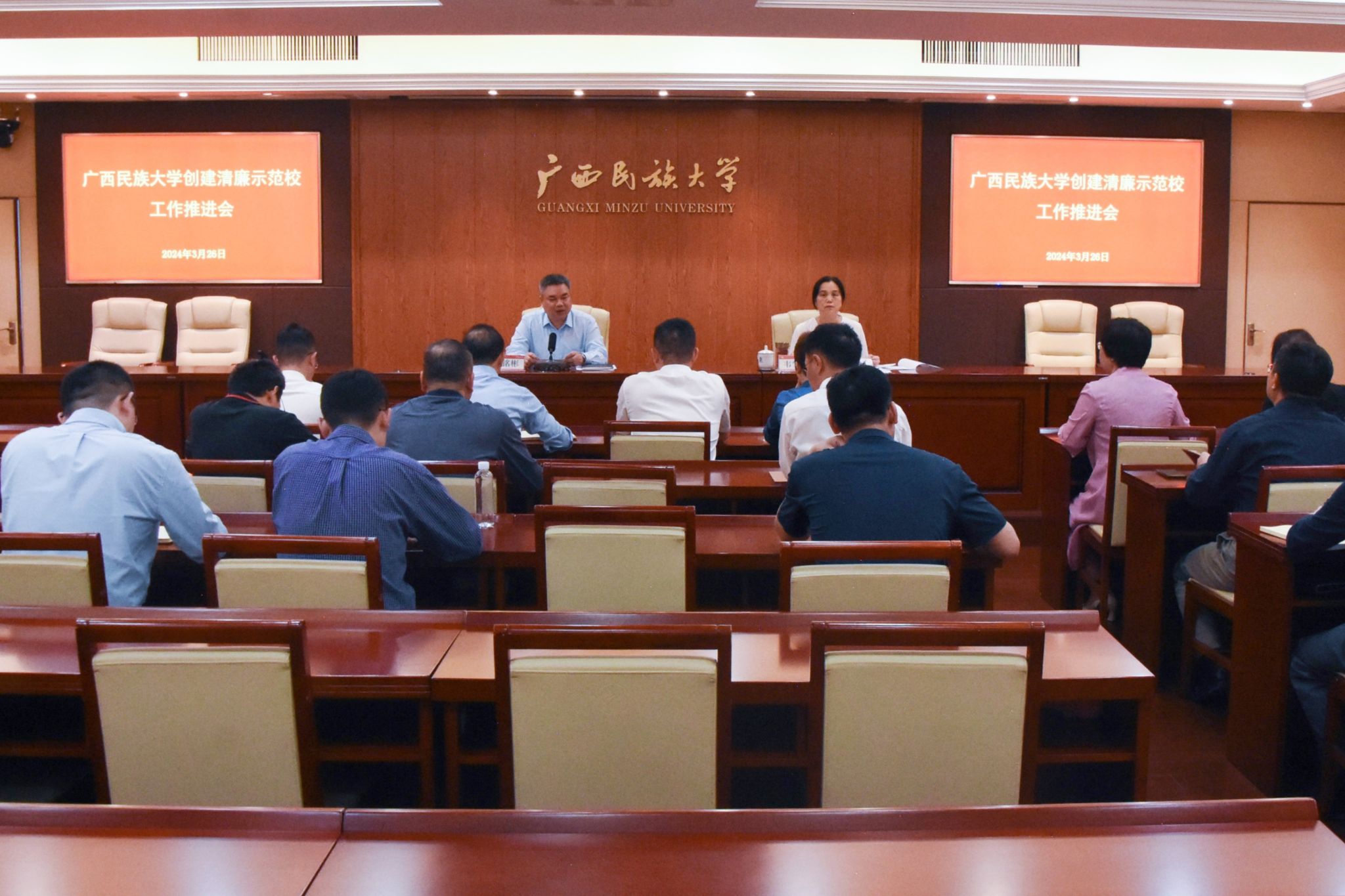 【大学生通讯社报道】3月26日上午,广西民族大学创建清廉示范学校工作推进会在办公楼211会议室召开。校党委副书记陈铭彬,自治区纪委监委驻广西民族大学纪检监察组组长,校党委副书记、纪委书记韦雪芳出席会议,清廉民大建设专责小组工作成员与会。