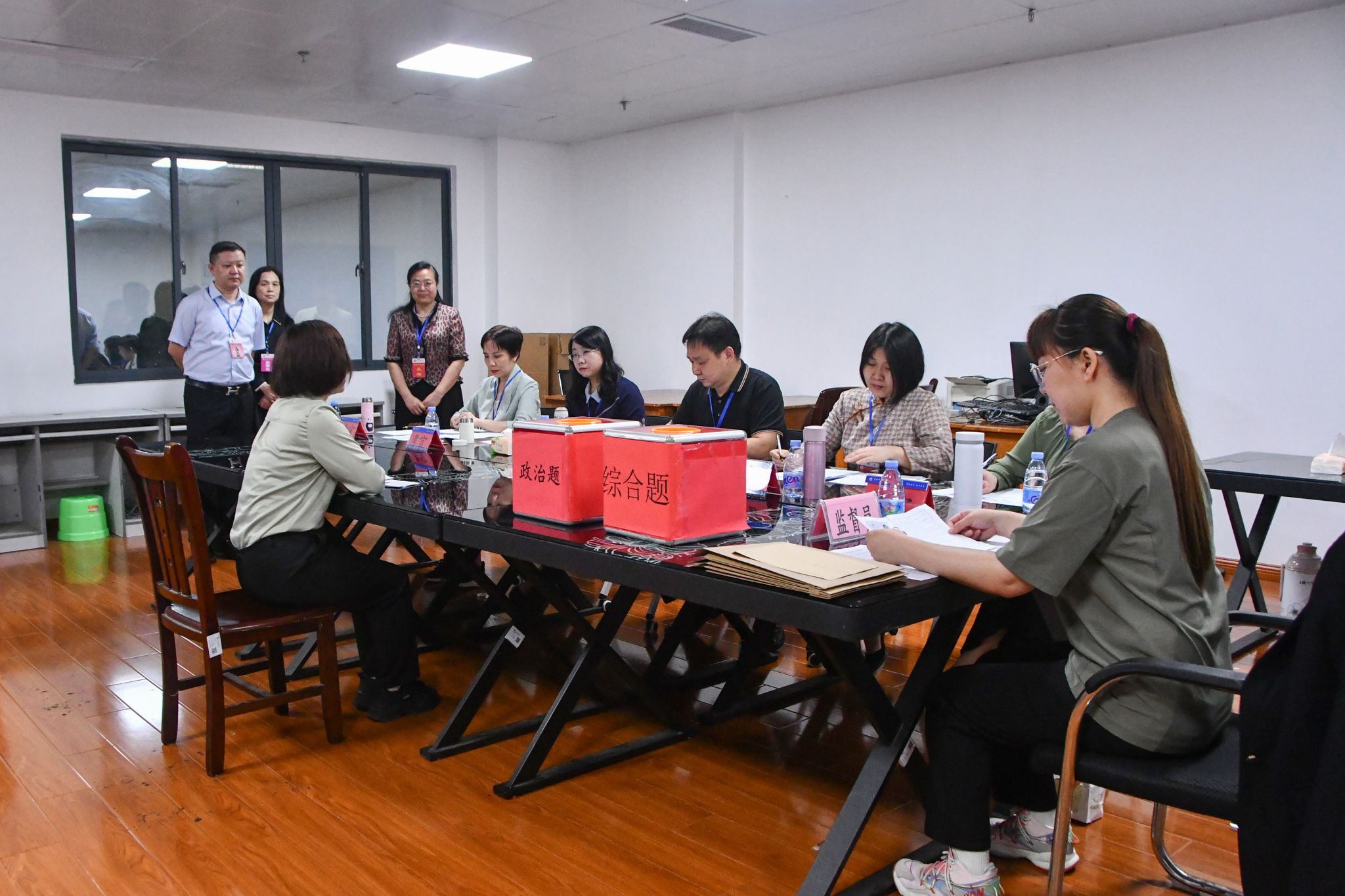 校领导详细了解报考人数、考场布置情况、考务工作安排等有关内容,实地检查考场秩序、考试环境、考生答题等情况。