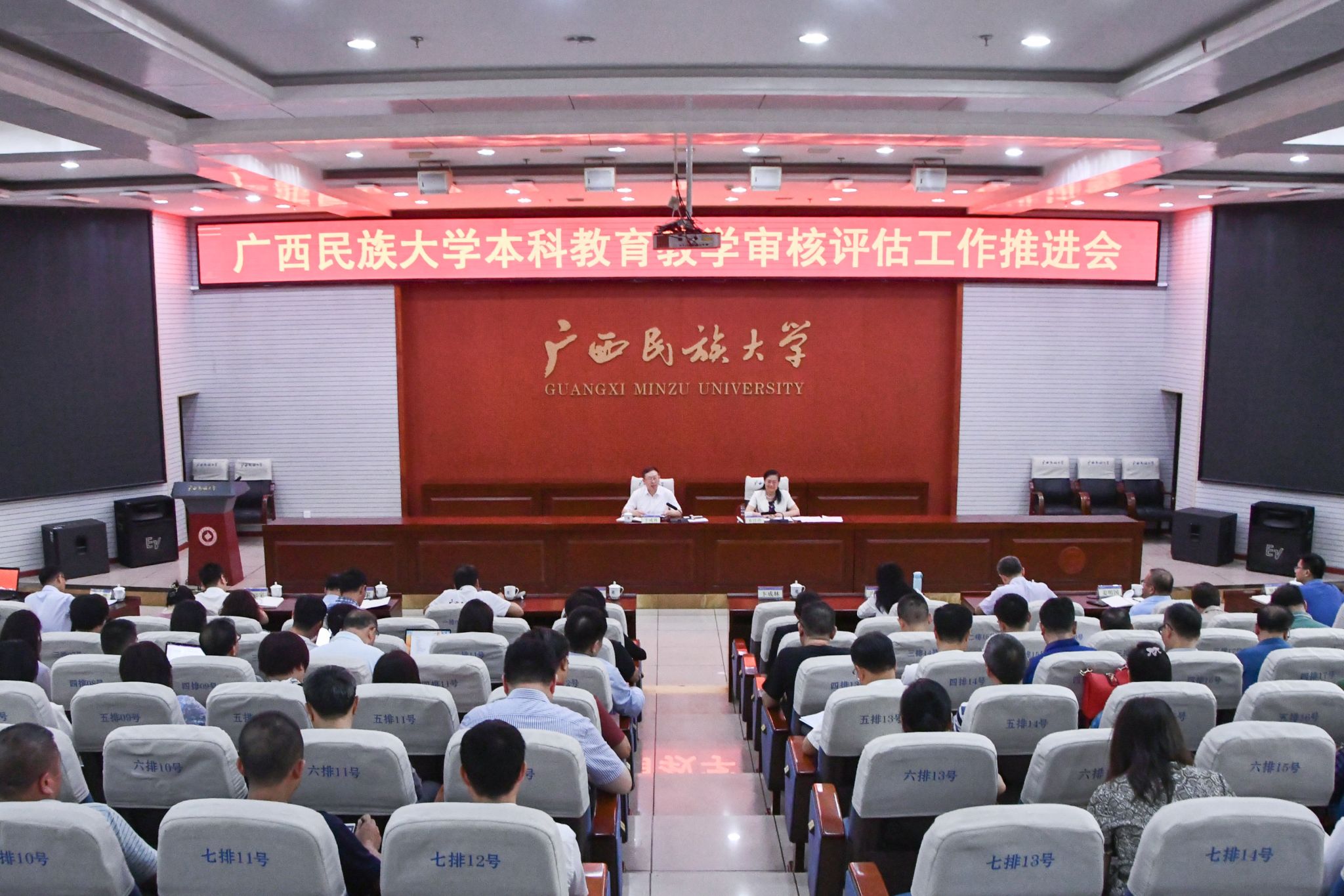 【大学生通讯社报道】4月17日下午,广西民族大学在科技楼报告厅召开本科教育教学审核评估工作推进会,校党委书记卞成林出席会议并讲话,校长韦仕珍主持会议,校领导韦雪芳、蔡高根、吕俊彪、何立荣、姜明国、高兴宇出席会议。