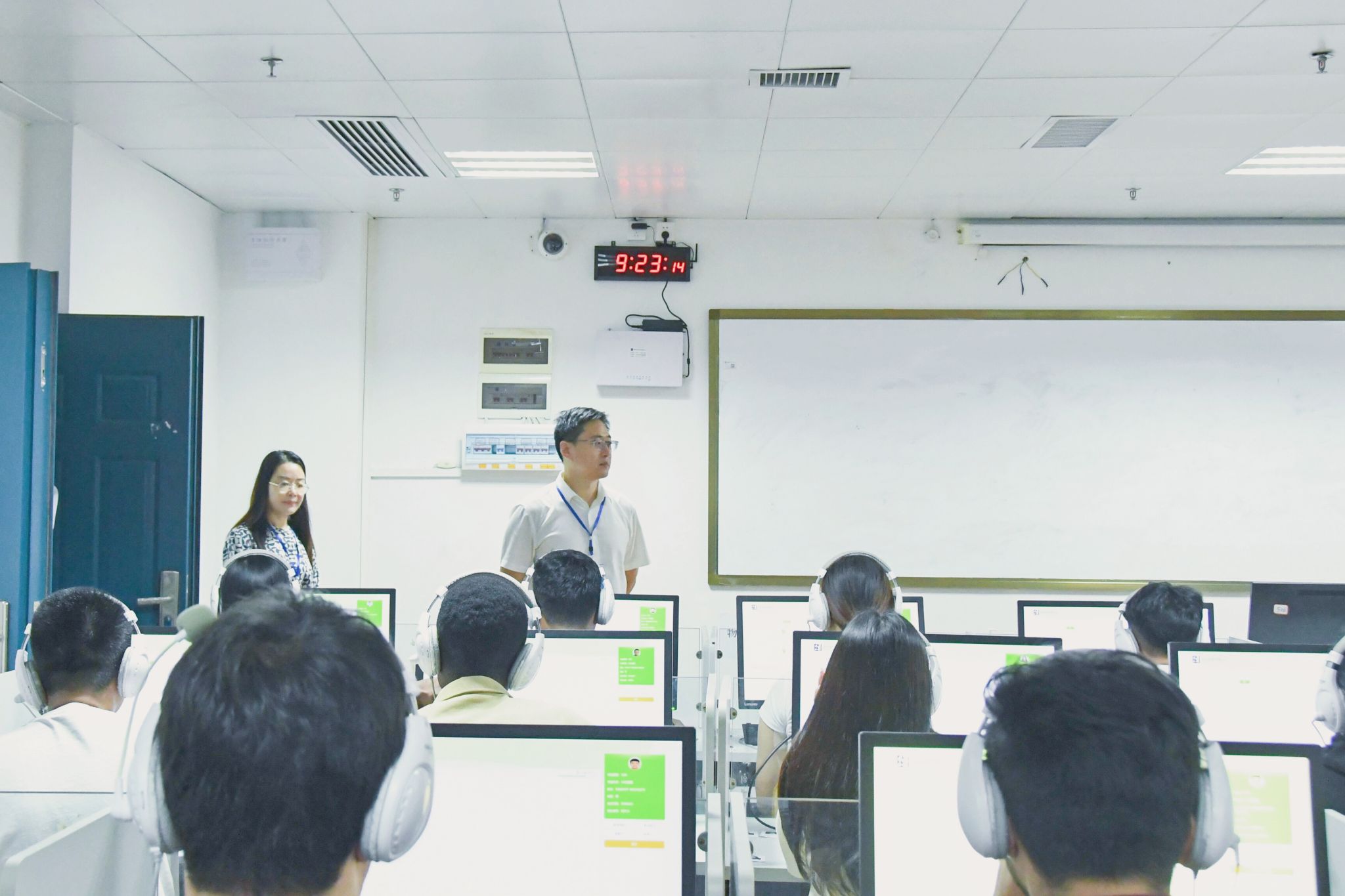 【校领导检查汉语水平考试】4月21日,副校长高兴宇到文科综合实验训练中心检查汉语水平考试工作部署落实情况,强调各部门要强化责任担当,做实做细各项工作,严格按照考试流程和规定,确保汉语水平考试工作安全平稳实施,确保考试公平、公正。(初审/肖海芹 复审/潘之铭 终审/王文娟)