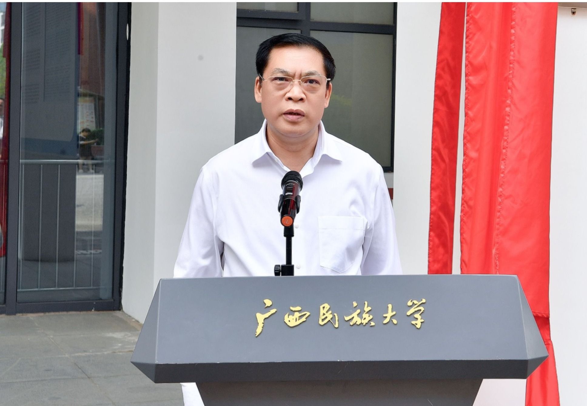 广西民族大学党委副书记、校长韦仕珍主持揭牌仪式