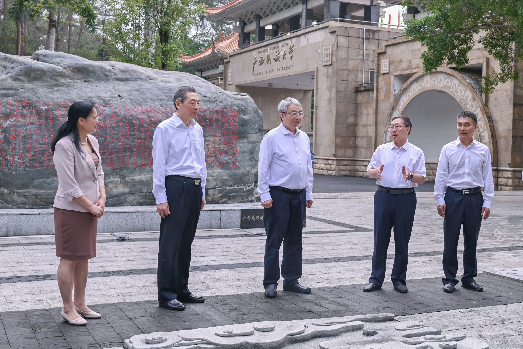 自治区政协主席孙大伟,自治区政协副主席、广西大学党委书记王乃学,民盟中央组织部部长刘雅玲,民盟广西区委主委、自治区水利厅厅长邓长球,广西民族大学党委书记卞成林,校长韦仕珍等陪同调研。(初审:康忠德 编辑:万晓彤 复审:潘之铭 终审:王文娟)