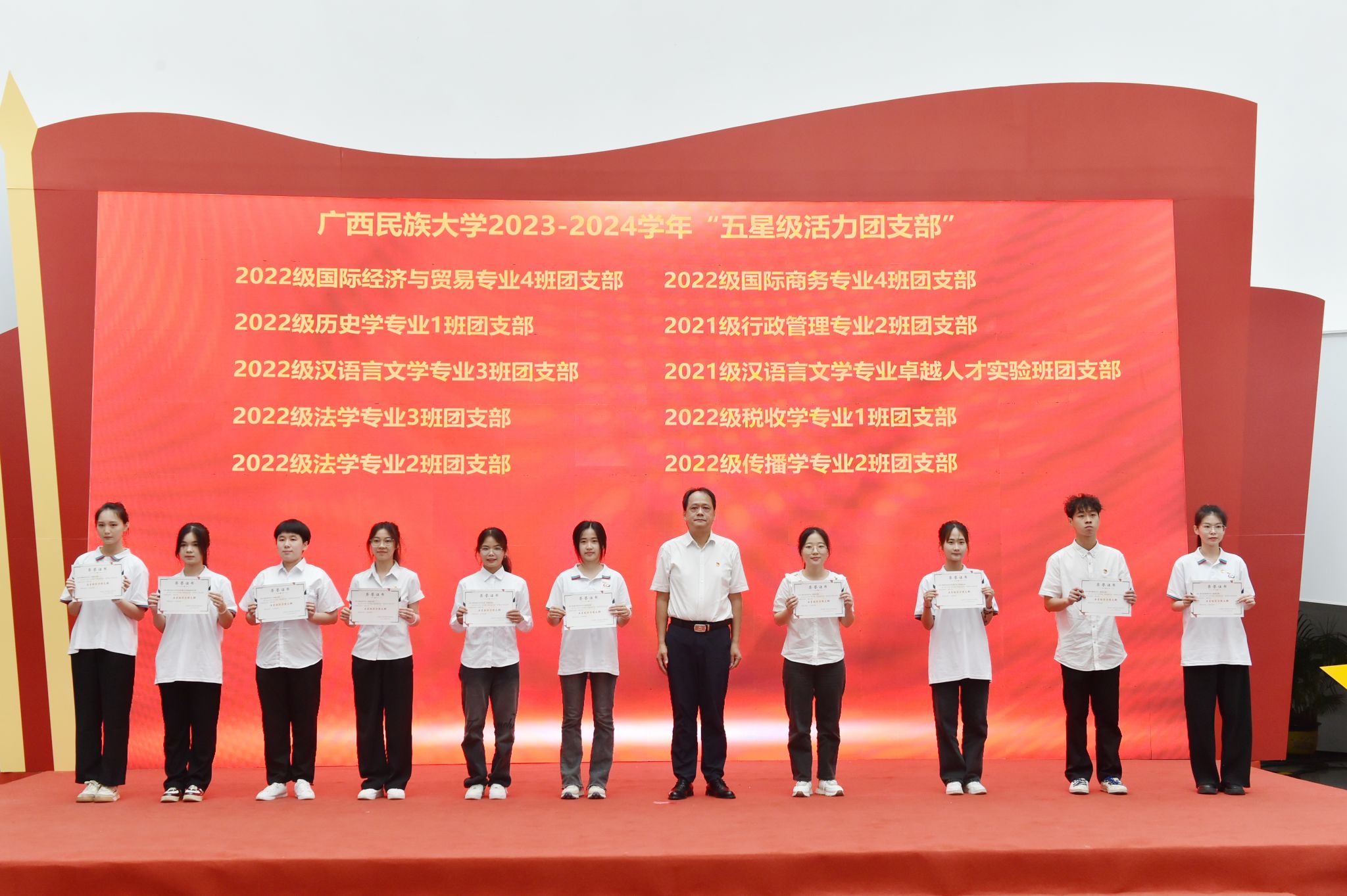 5月10日下午,广西民族大学2024年“我与祖国共成长”青年榜样颁奖典礼在文化研习基地举行。校党委书记卞成林和在家校领导出席典礼并为获奖个人和集体颁奖。