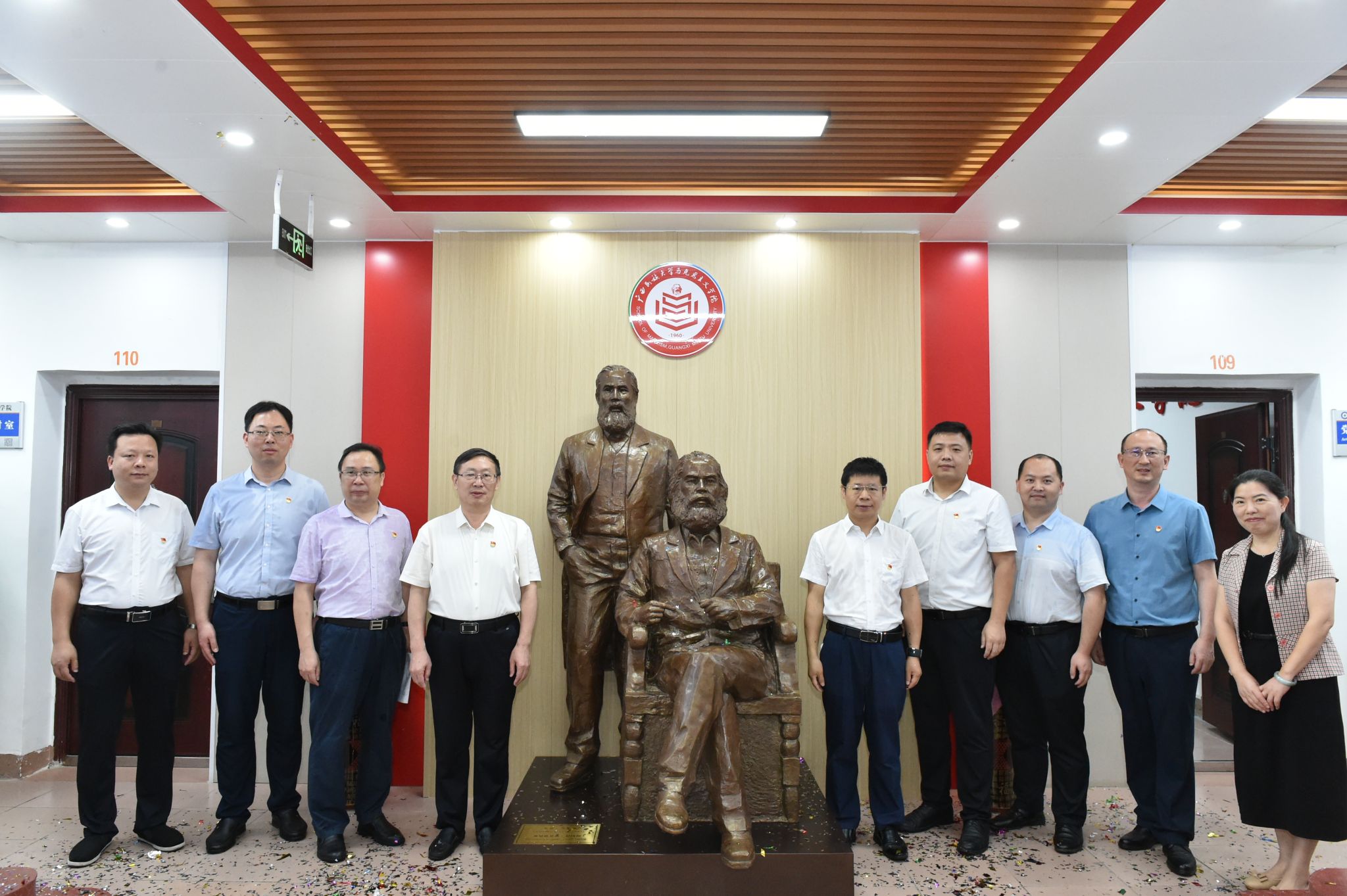 马克思恩格斯雕像揭幕后,马克思主义学院“明德格物、守正创新”院训石揭幕。