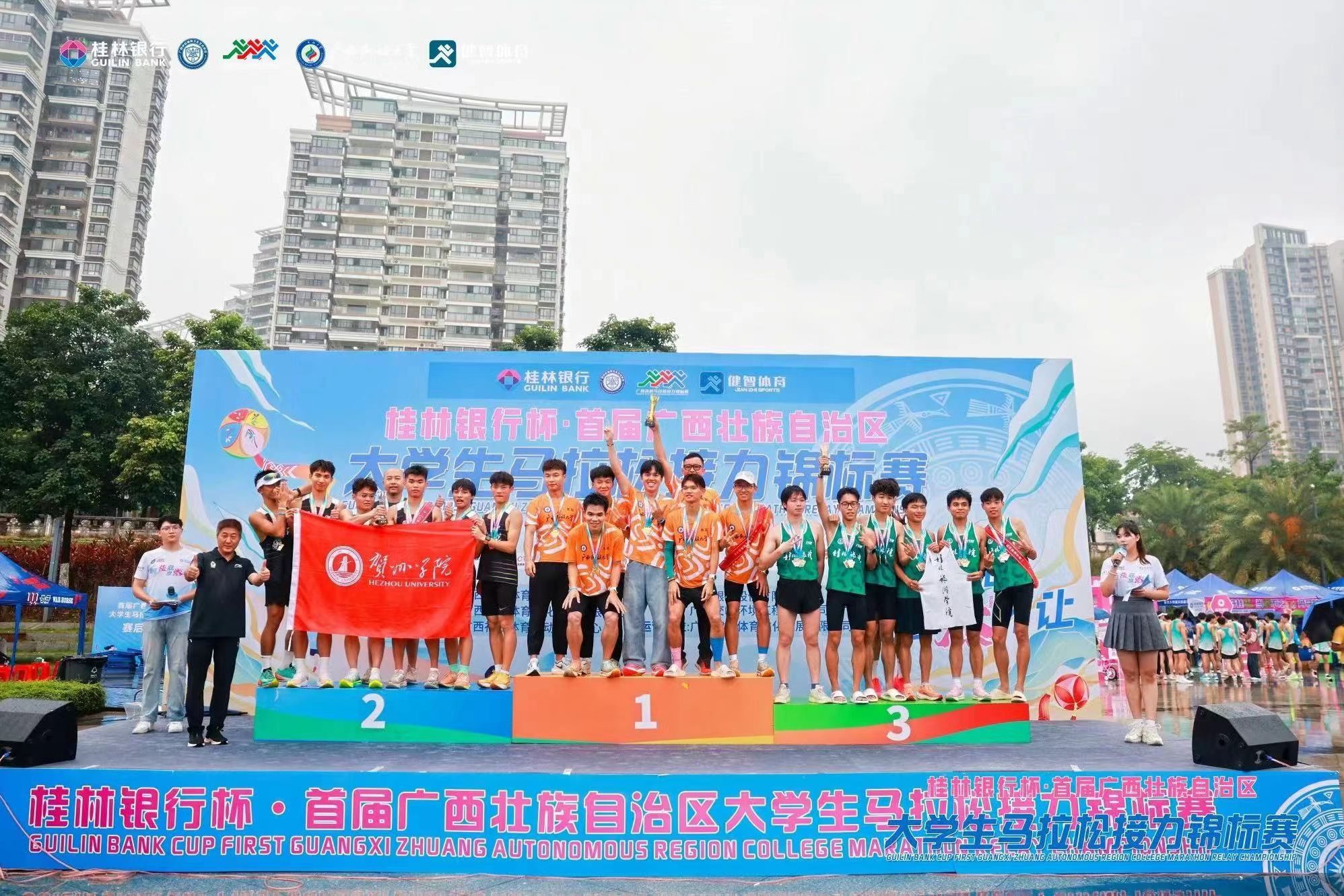 5月18日,首届广西大学生马拉松接力锦标赛在南宁市邕江两岸体育公园拉开帷幕。广西民族大学共有16名学生参赛,经过与全区近50所高校、500多名选手角逐,我校学子在乙组(体育专业)中勇夺冠军,在甲组(普通本科)中荣获亚军。