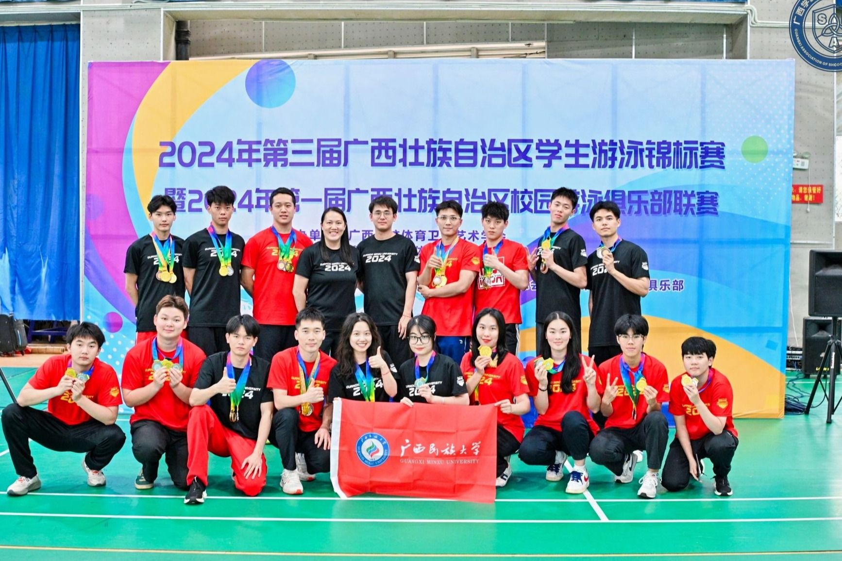 5月18日至19日,第三届广西壮族自治区学生游泳锦标赛在柳州开赛,广西民族大学游泳队在比赛中斩获32金21银17铜以及111项前八名的好成绩。