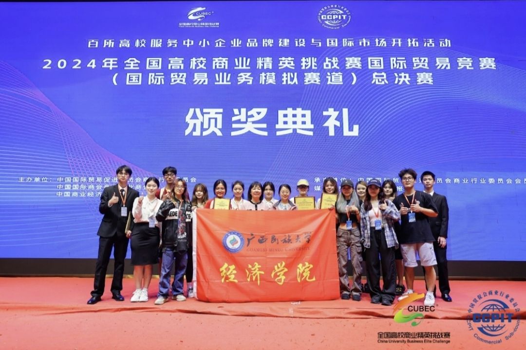 5月23日—27日,2024年全国高校商业精英挑战赛国际贸易竞赛(国际贸易业务模拟赛道)总决赛在宁波举行。广西民族大学经济学院国际经济与贸易专业共有2支队伍参赛,荣获国家级一等奖2项,同时我校获“最佳院校组织奖”。