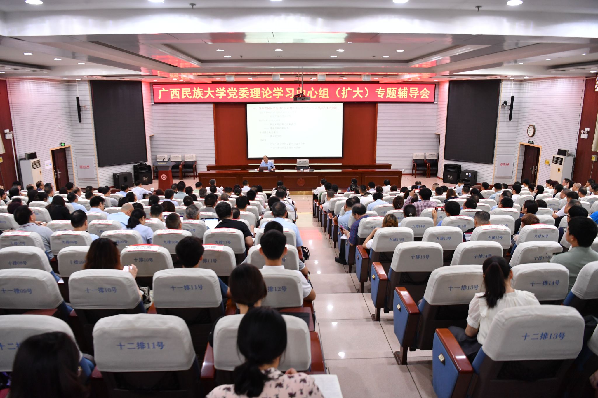 6月7日上午,广西民族大学党委理论学习中心组(扩大)专题辅导会在科技楼报告厅召开,中央党校(国家行政学院)秦刚教授作学习习近平新时代中国特色社会主义思想专题辅导。学校党委书记卞成林主持会议。校党委副书记、校长韦仕珍等在家校领导,党委委员、全体中层领导干部、马克思主义学院全体教师及辅导员和学生代表参加学习会。