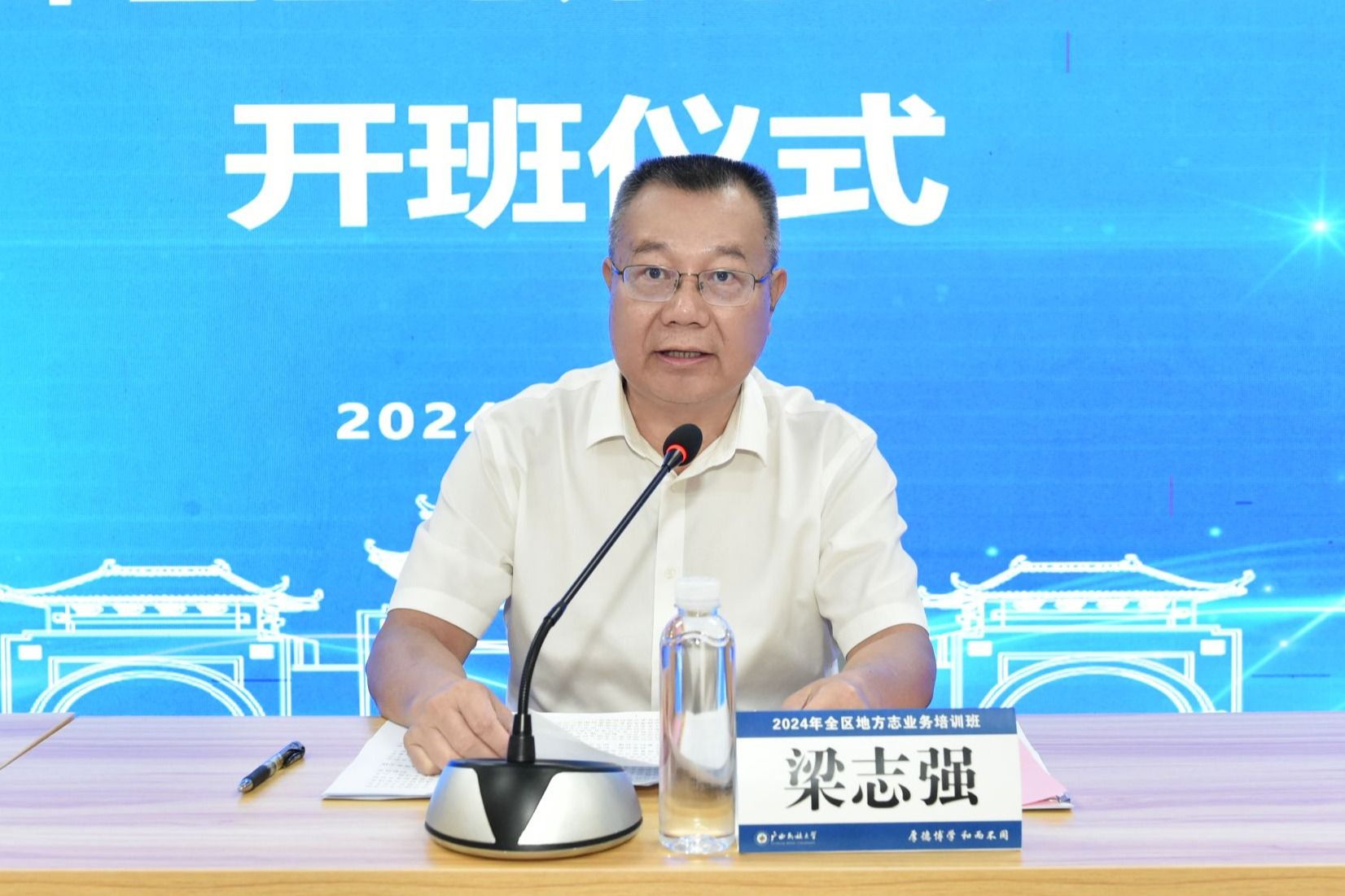 梁志强向关心支持培训班的广西民族大学领导和专家表示感谢,向积极参加培训的各位学员表示欢迎,希望各位学员充分认识地方志在传承弘扬中华优秀传统文化中的价值和作用,切实增强做好新时代地方志工作的责任感、使命感,进一步提升综合素质和业务能力,确保培训取得实在成效。