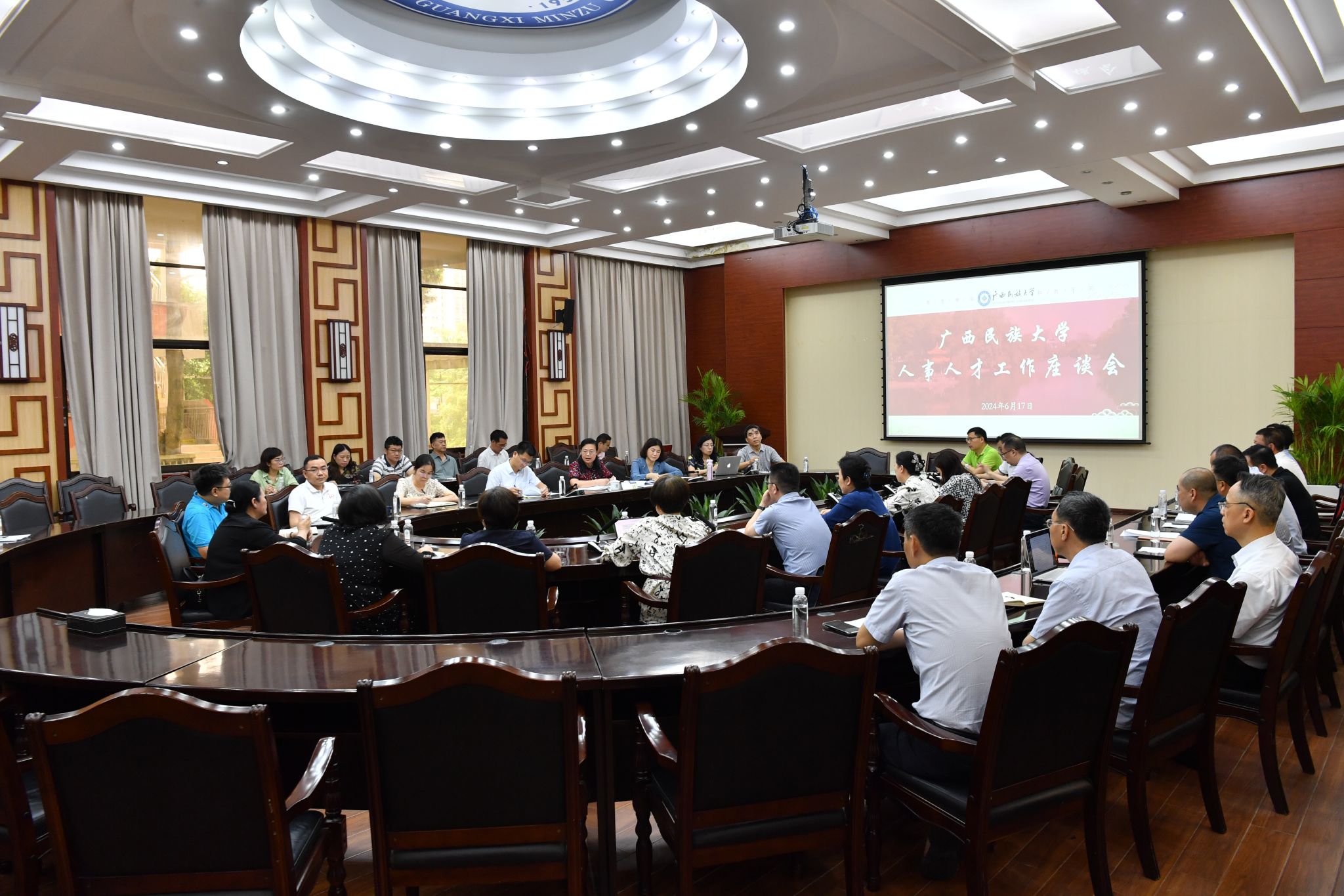 【大学生通讯社报道】6月17日下午,广西民族大学人事人才工作座谈会在国际合作与交流处大会议室召开,校长韦仕珍出席会议,各教学单位、有关职能部门负责人参加会议。