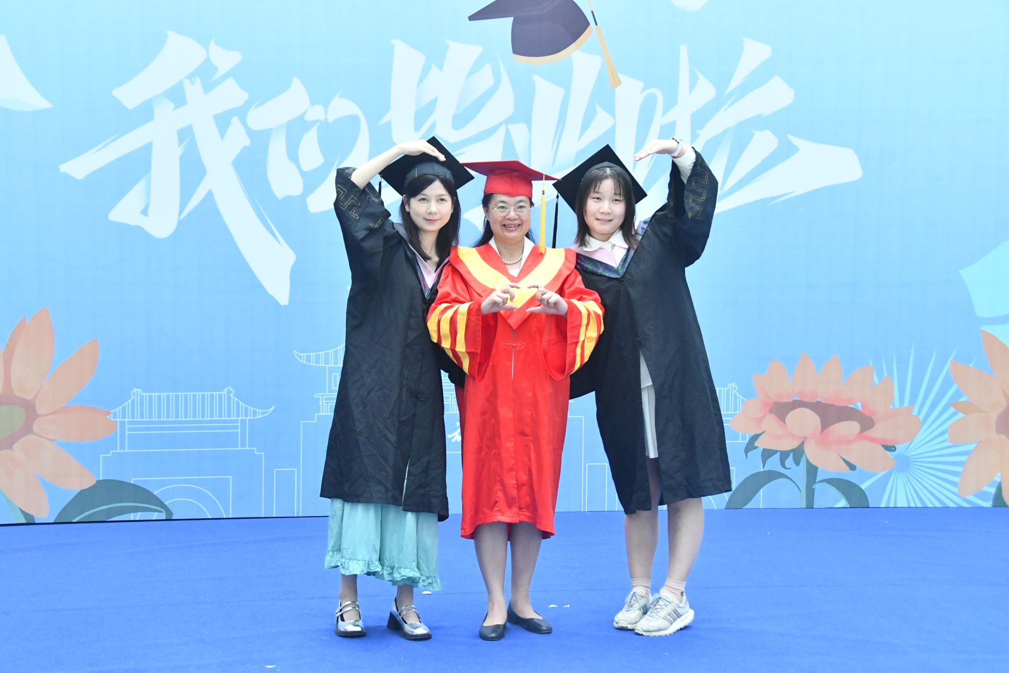 【大学生通讯社报道】离别钟声敲响,毕业如期而至。6月25日上午,校长韦仕珍与毕业生们在相思湖校区文化研习基地同框合影,共同留下青春印记。