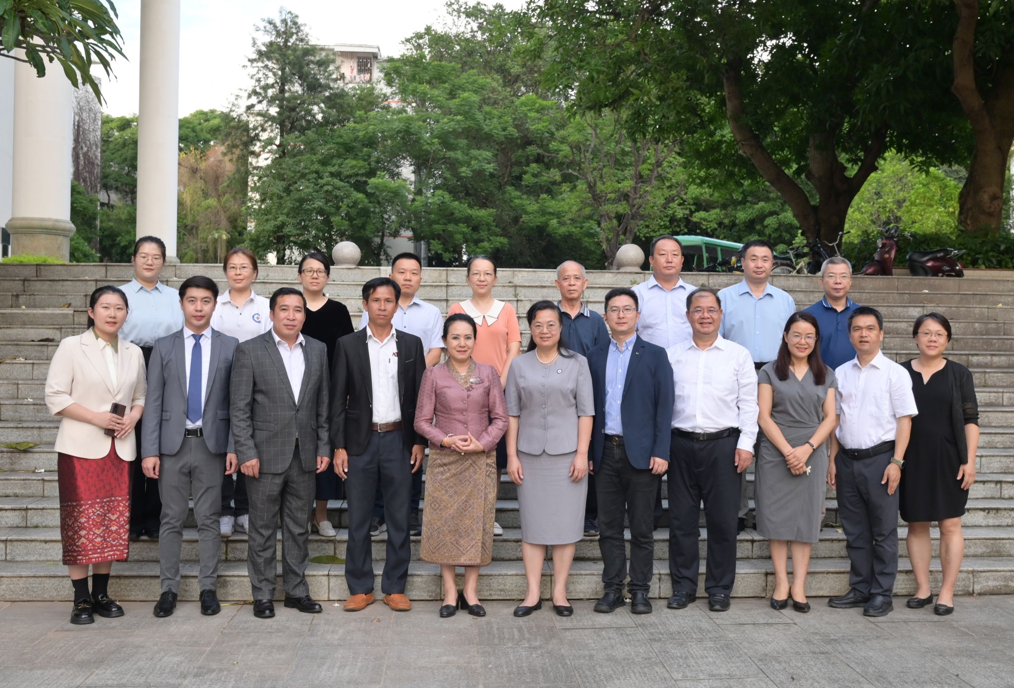 7月3日下午,广西民族大学校长韦仕珍会见老挝国家社会与经济科学院副院长康拉曦•乔本潘一行。双方在国际教育综合楼一楼会议室召开座谈会。