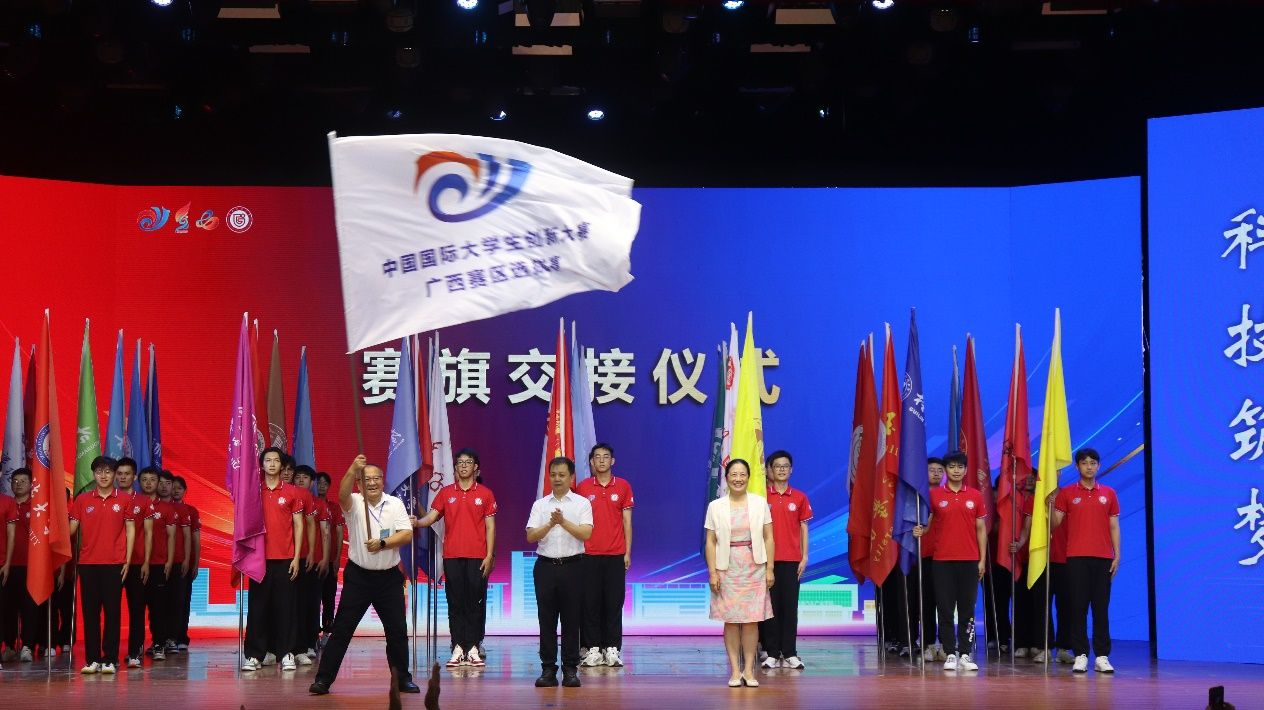 广西民族大学党委常委、副校长姜明国出席闭幕式,并接过中国国际大学生创新大赛(2025)广西选拔赛赛旗,我校正式成为下一届中国国际大学生创新大赛(2025)广西选拔赛承办方。(初审:刘银妹 编辑:陈水兰 复审:荣子卿 终审:王文娟)