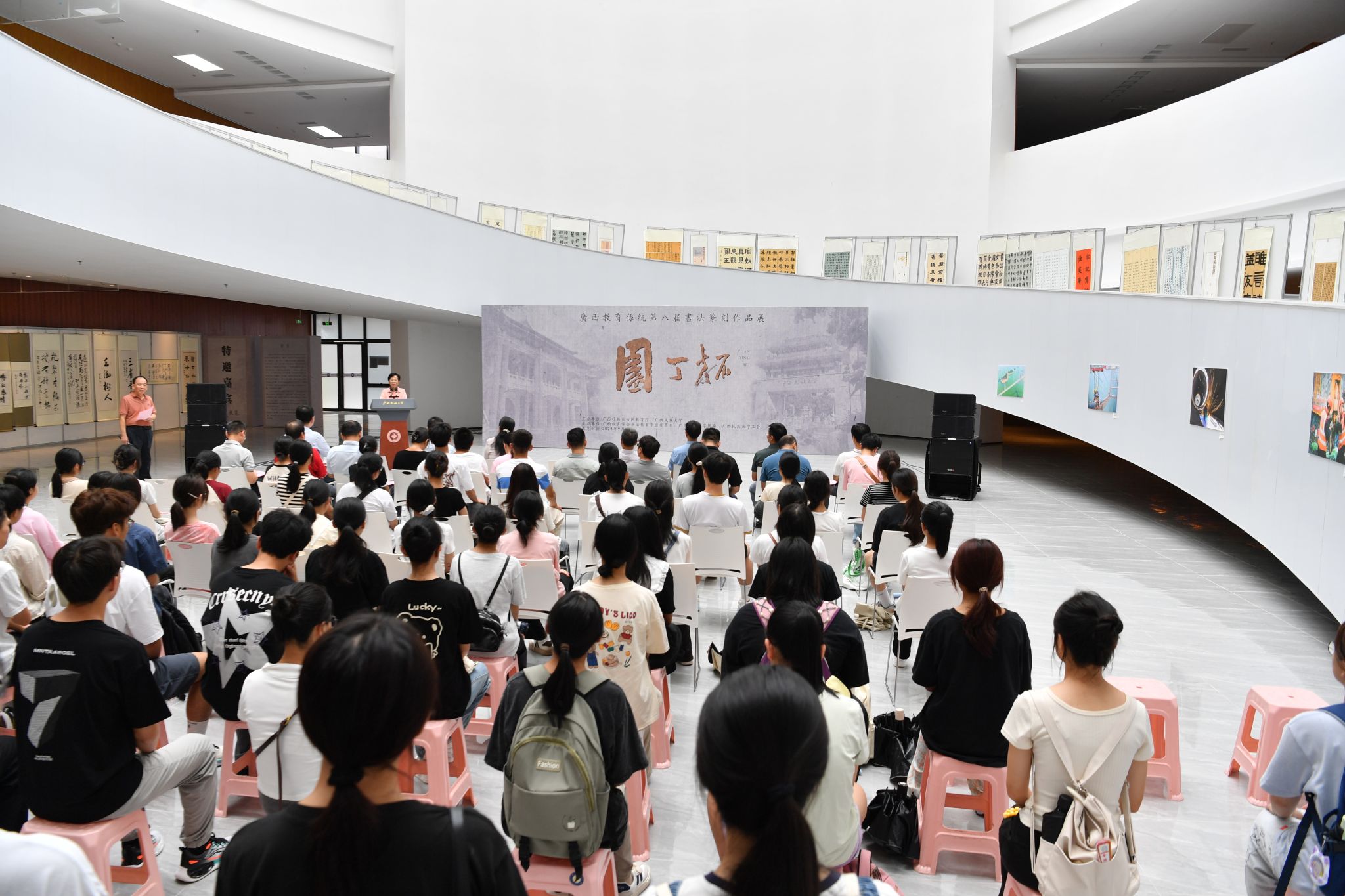 【大学生通讯社】9月9日下午,“园丁杯”广西教育系统第八届书法篆刻作品展在广西民族大学文化研习基地开幕,校党委副书记、校长韦仕珍,自治区人民政府原参事、十二届自治区政协人口资源环境委主任、原自治区高校工委副书记秦敬德,自治区教育厅二级巡视员赵成光,校党委副书记邓国彬出席开幕式,学校师生代表参加活动。