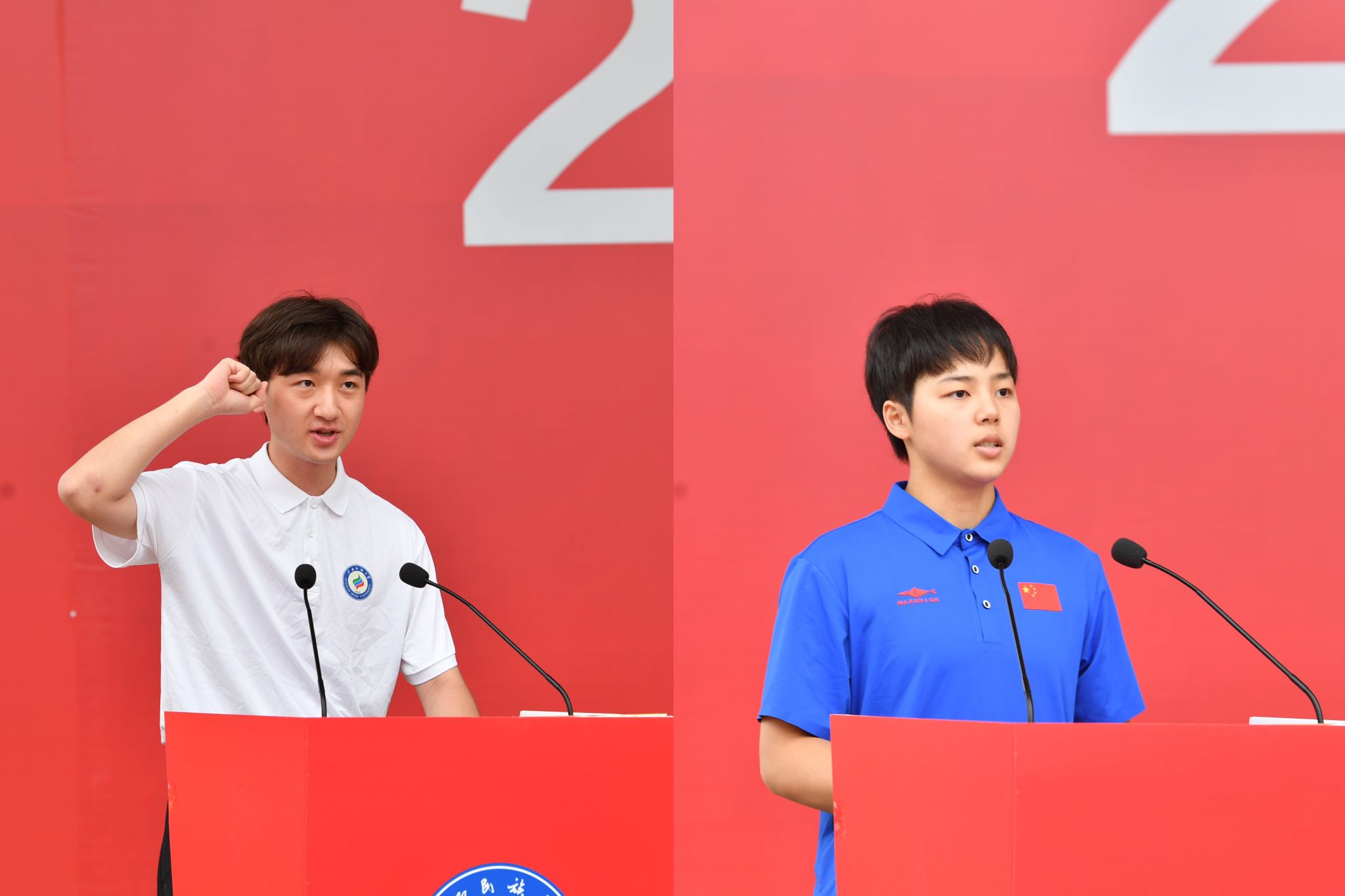 体育与健康科学学院2024级本科生姚华莉在第二十三届世界蹼泳锦标赛中取得400米器泳项目等多个项目的冠军,她代表2024级全体新生发言:“我将牢记校长的希望和要求,刻苦学习,弘扬中华体育精神,展现高水平运动员大学生的良好精神风貌,在未来不懈奋斗,争取更好成绩。”