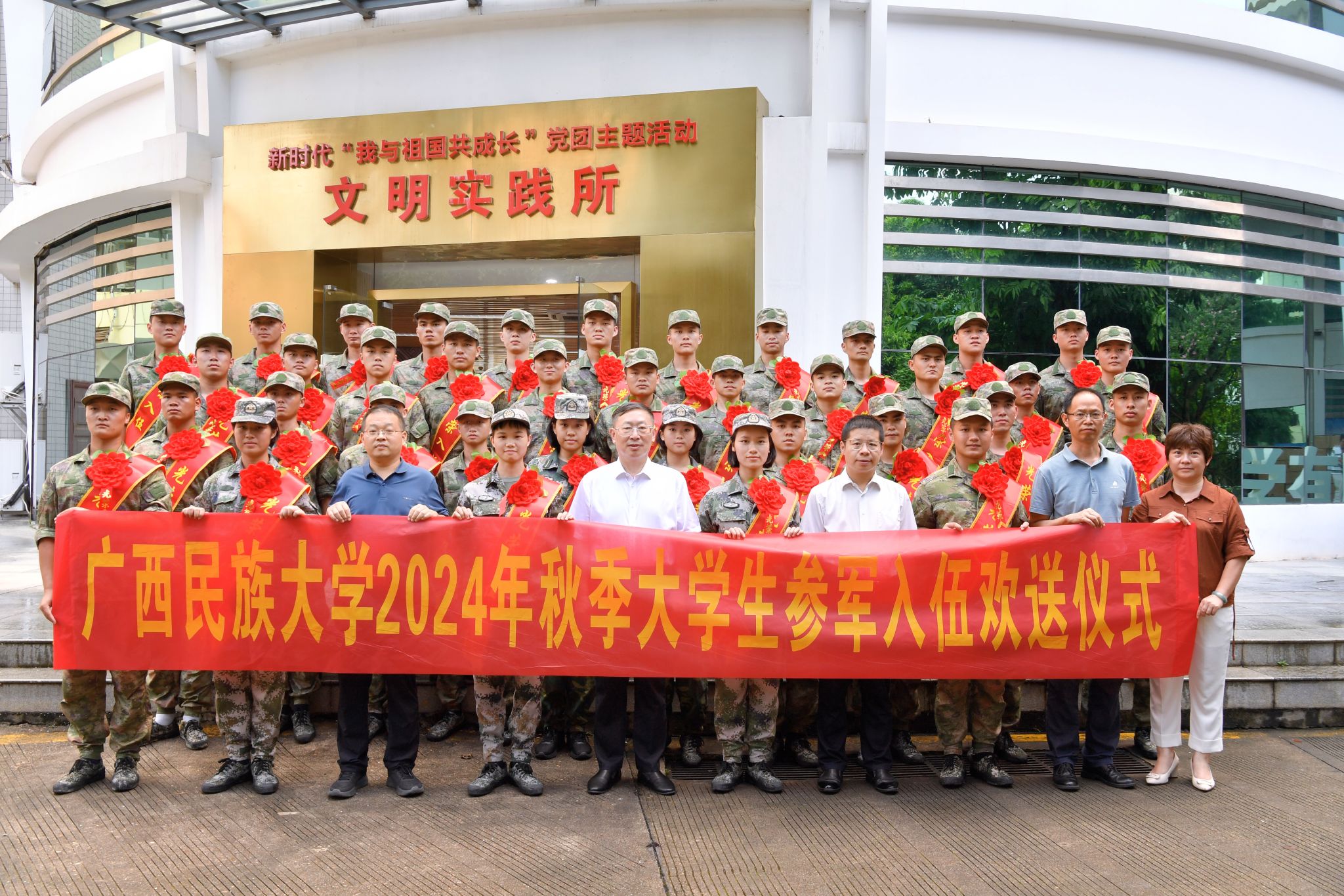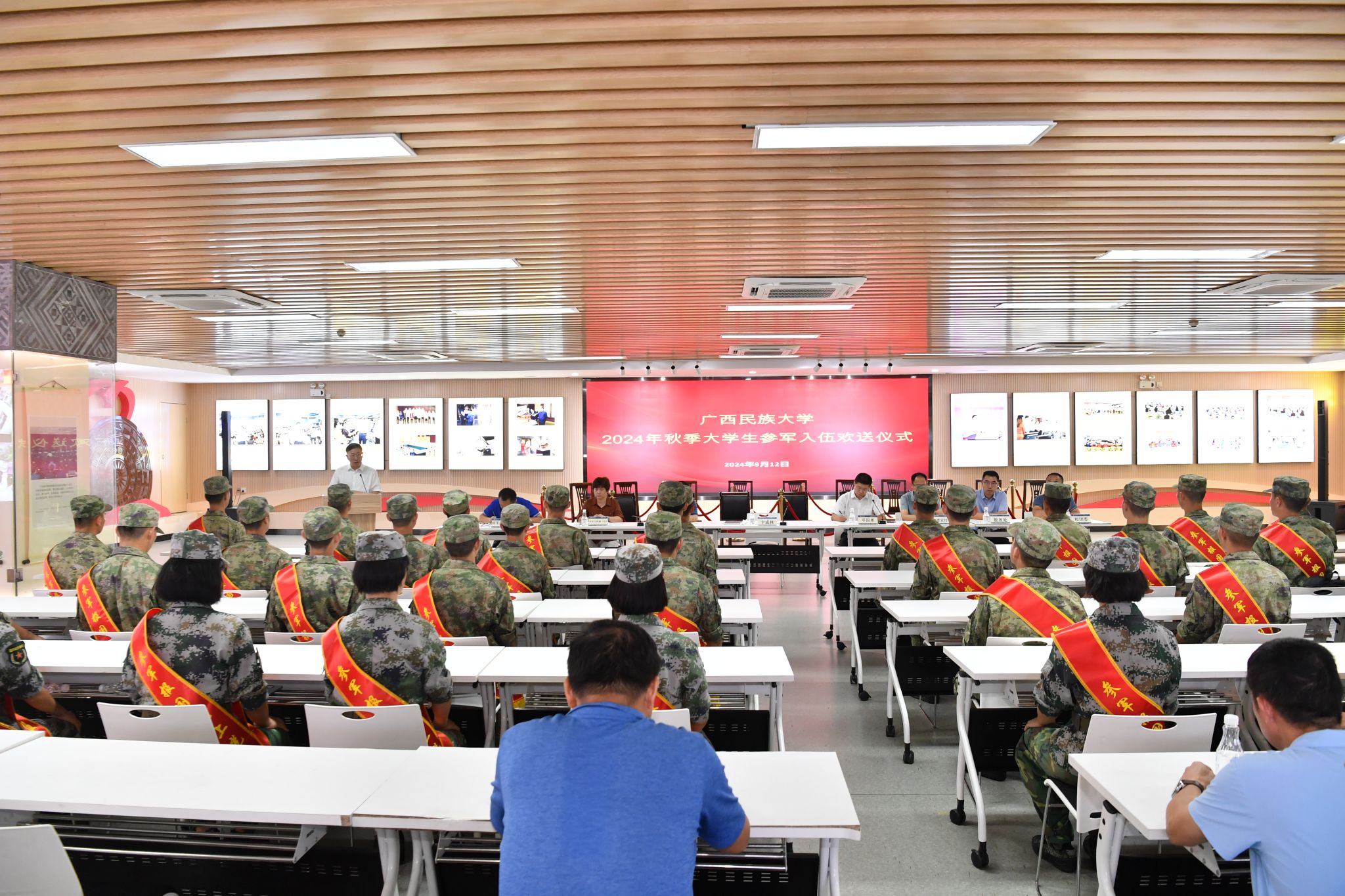 9月12日下午,广西民族大学举行2024年秋季大学生参军入伍欢送仪式,学校党委书记卞成林出席并讲话,党委副书记邓国彬主持欢送仪式。我校2024年共有53名毕业生入伍。