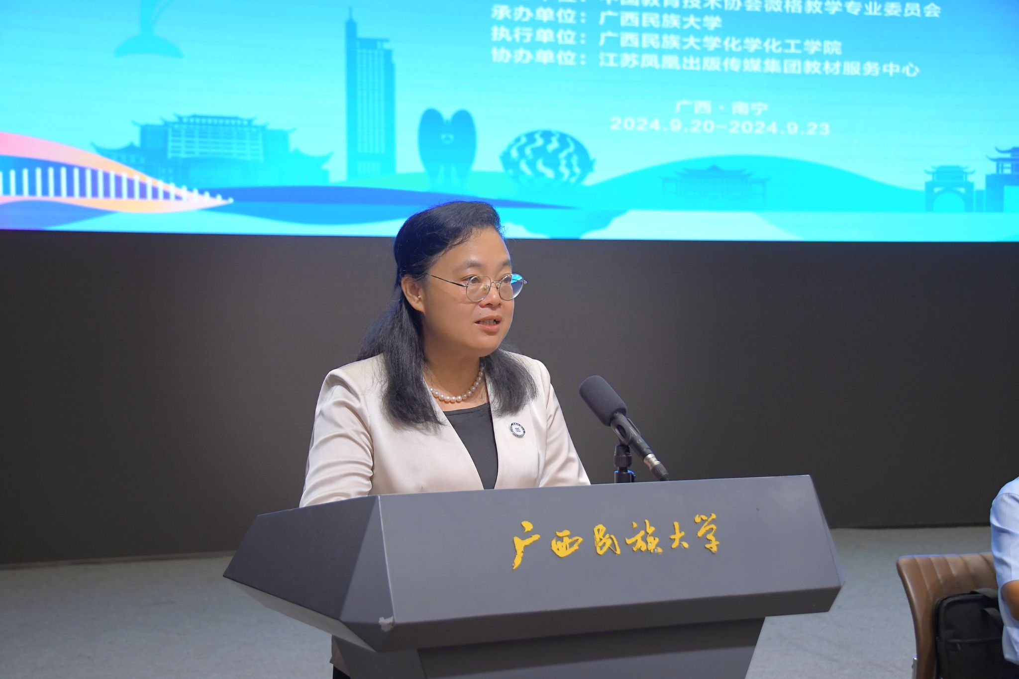 【大学生通讯社报道】9月21日, 2024年化学教育微格教学论坛暨第十三届高校化学教育师范生教学技能测试活动在广西民族大学举行。学校党委副书记、校长韦仕珍教授出席开幕式并致辞。中国教育技术协会微格教学专业委员会理事长孟宪凯教授,副理事长兼秘书长杨华教授出席活动。