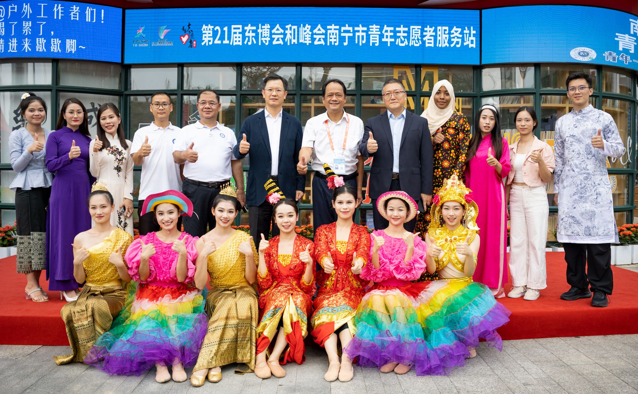 9月23日,高兴宇作为嘉宾出席在南宁举办的第6届"10+3青年科学家"论坛。广西民族大学作为协办单位,组织了60多名中外师生参加论坛。论坛前,高兴宇与参会留学生代表合影。(初审:梁桂娥 复审:潘之铭 终审:王文娟)