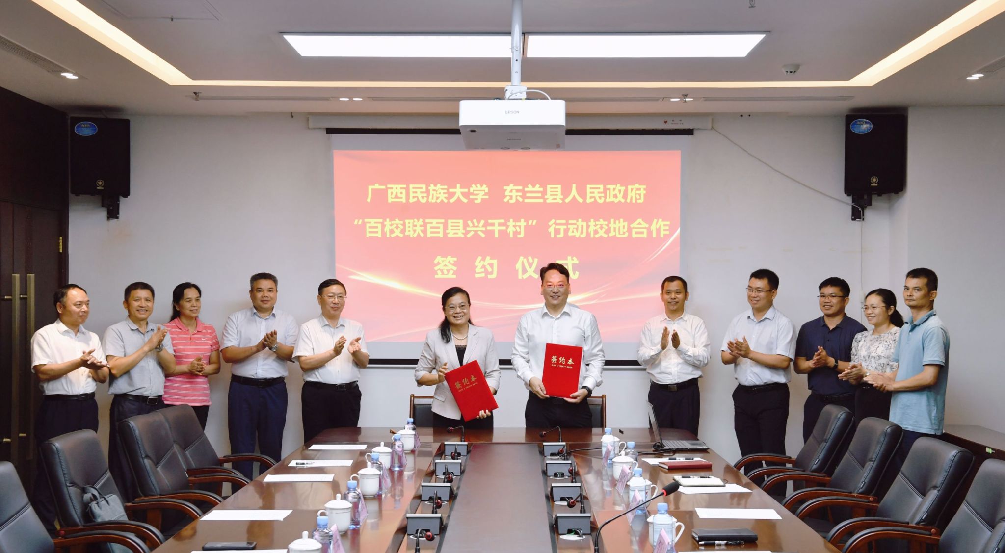 在东兰县韦拔群干部学院,广西民族大学与东兰县人民政府签订“百校联百县兴千村”行动校地合作协议。