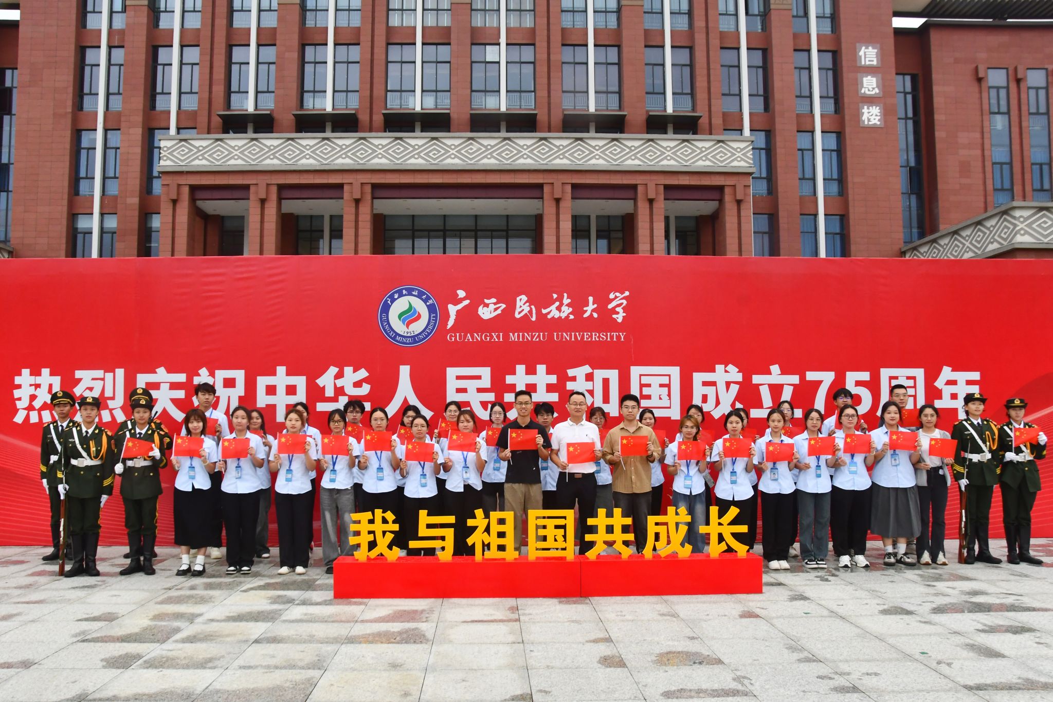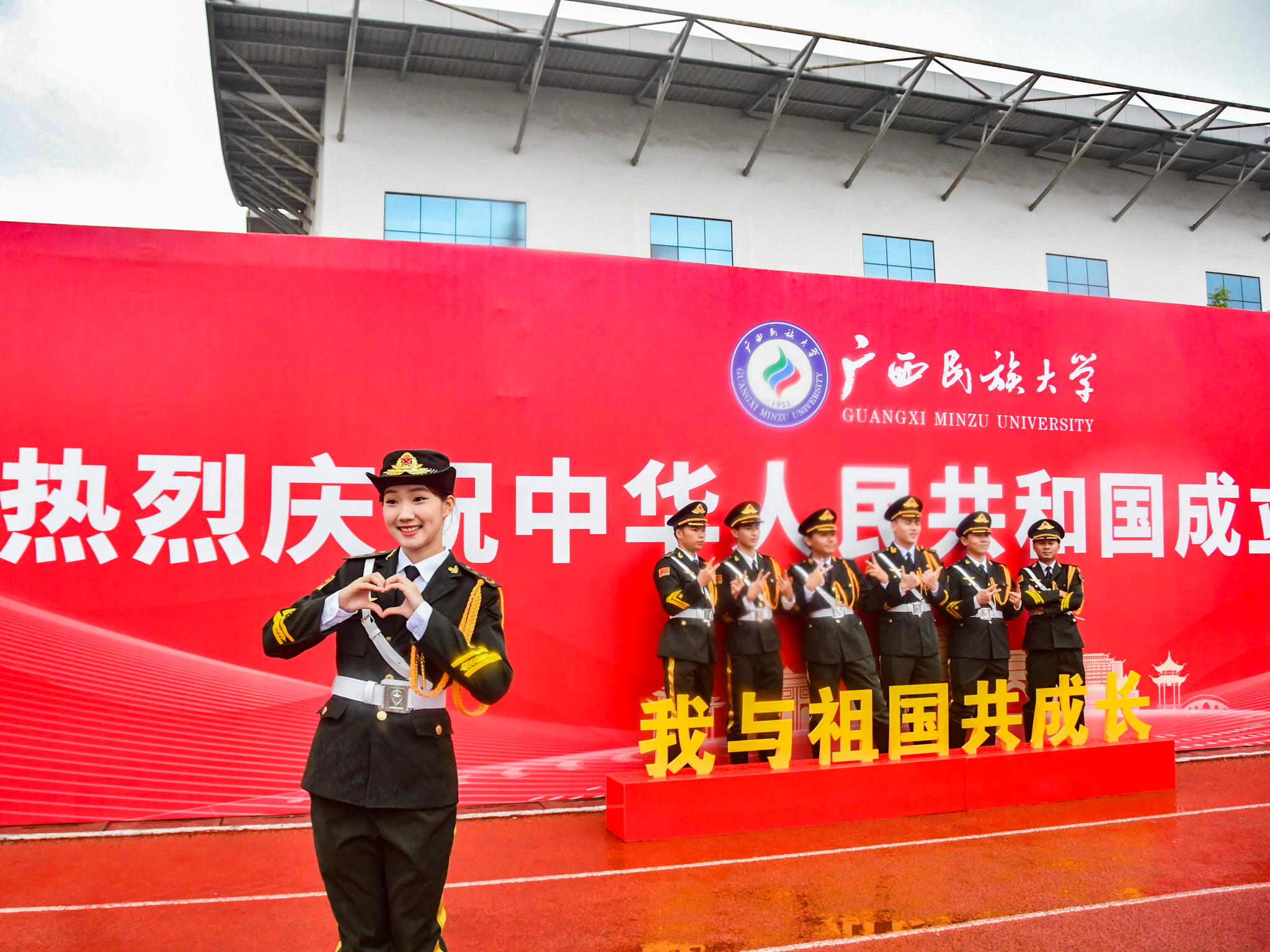 新中国迎来75周岁生日,广西民族大学也在共和国的怀抱里成长了72载。学校师生不忘初心,志存高远,敏于求学,学有所成,锻炼成才。愿以寸心寄华夏,且将岁月赠山河,愿以吾辈之青春,捍卫盛世之中华,共祝祖国繁荣昌盛,国泰民安!