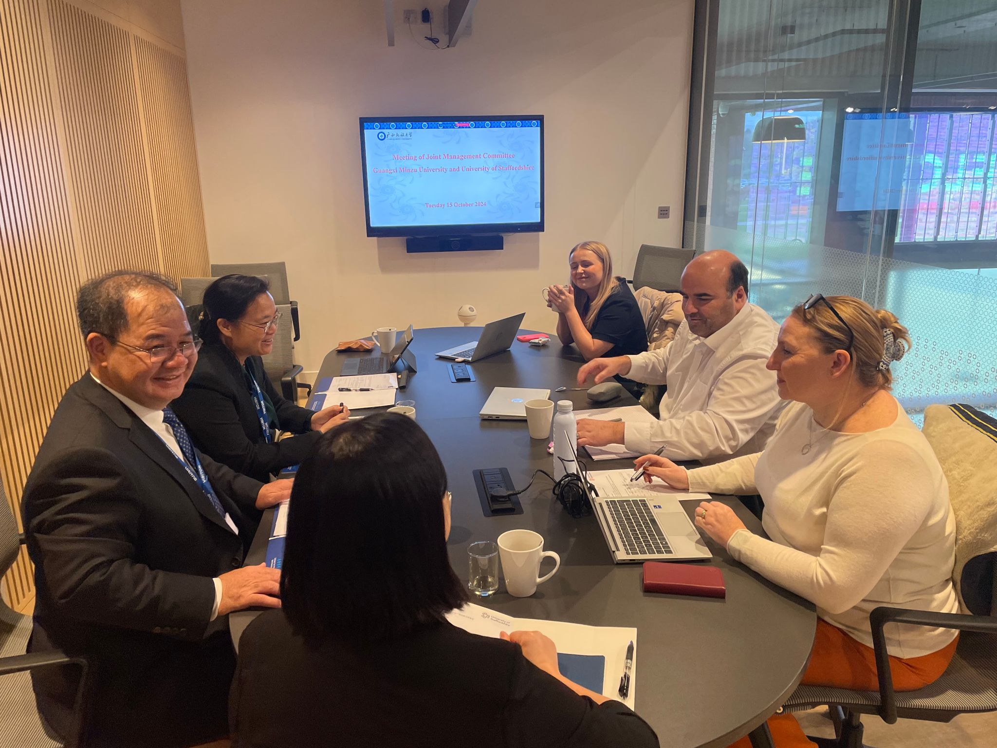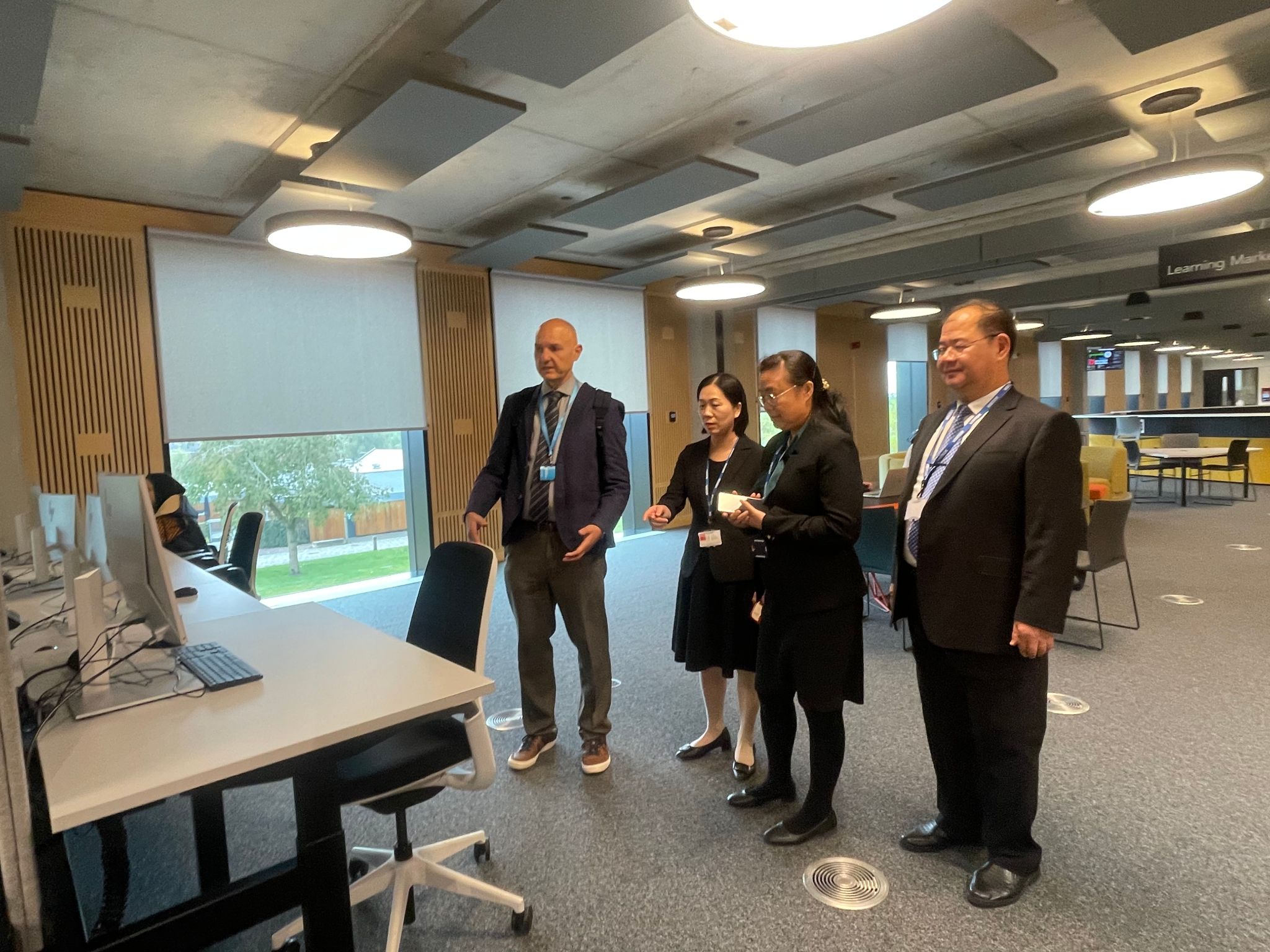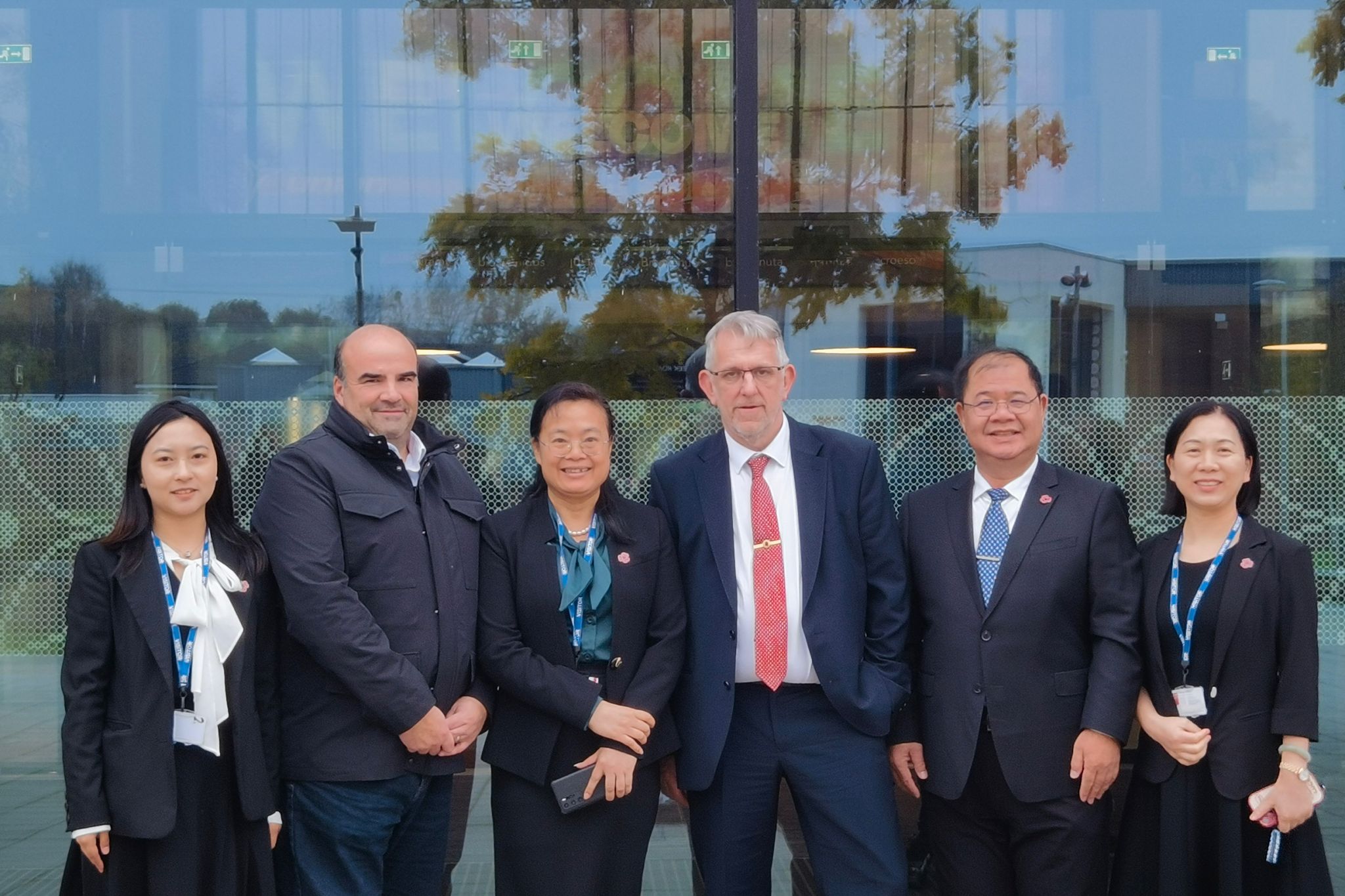 10月13—17日,广西民族大学校长韦仕珍教授率代表团一行到英国斯泰福厦大学访问。期间,代表团与斯泰福厦大学校长马丁·琼斯教授等举行工作会谈,参观斯泰福厦大学教学和教室管理系统,与斯泰福厦大学国际合作处、基础学院、数字科技创新和商务学院等进行了工作交流。