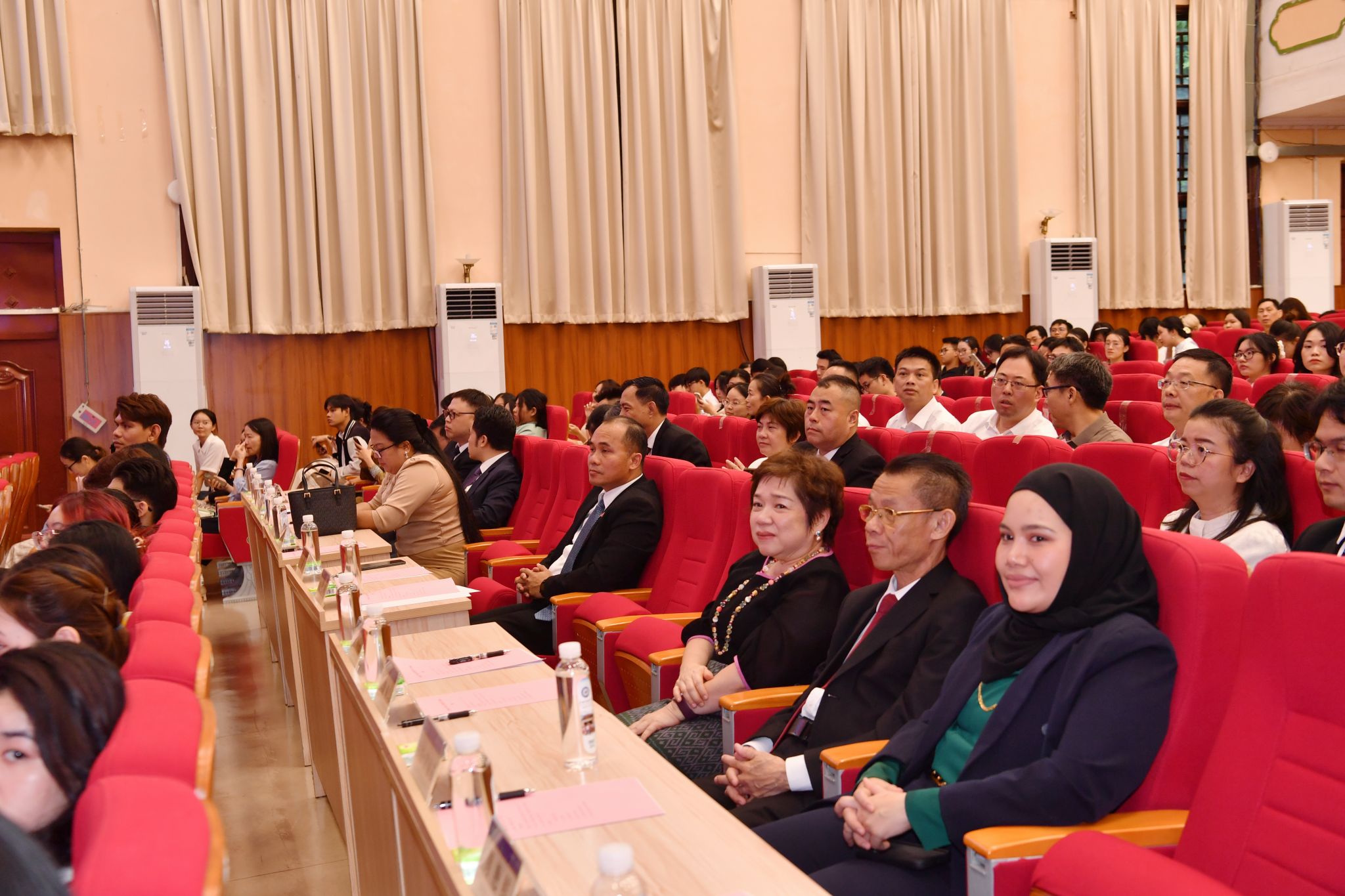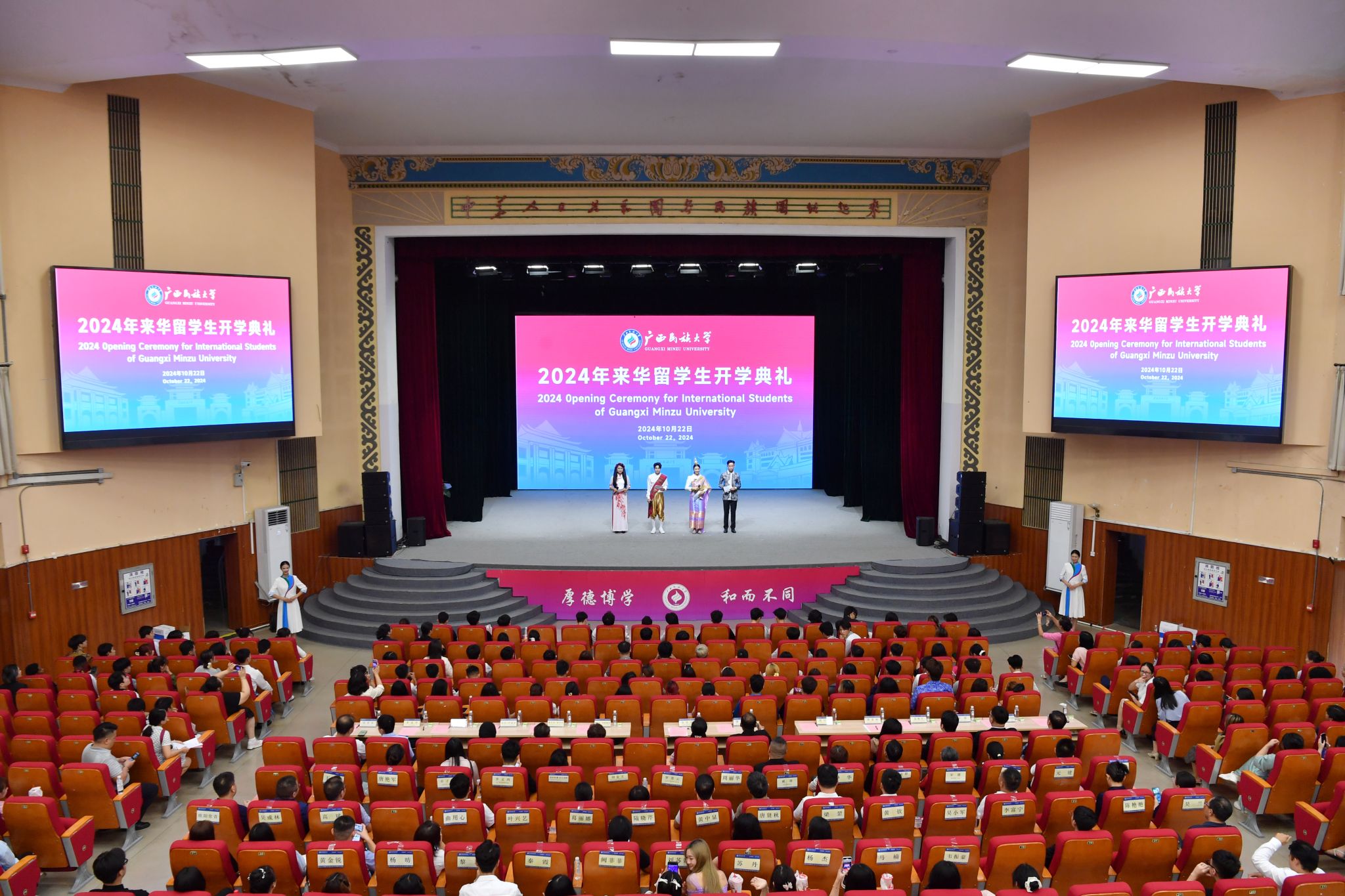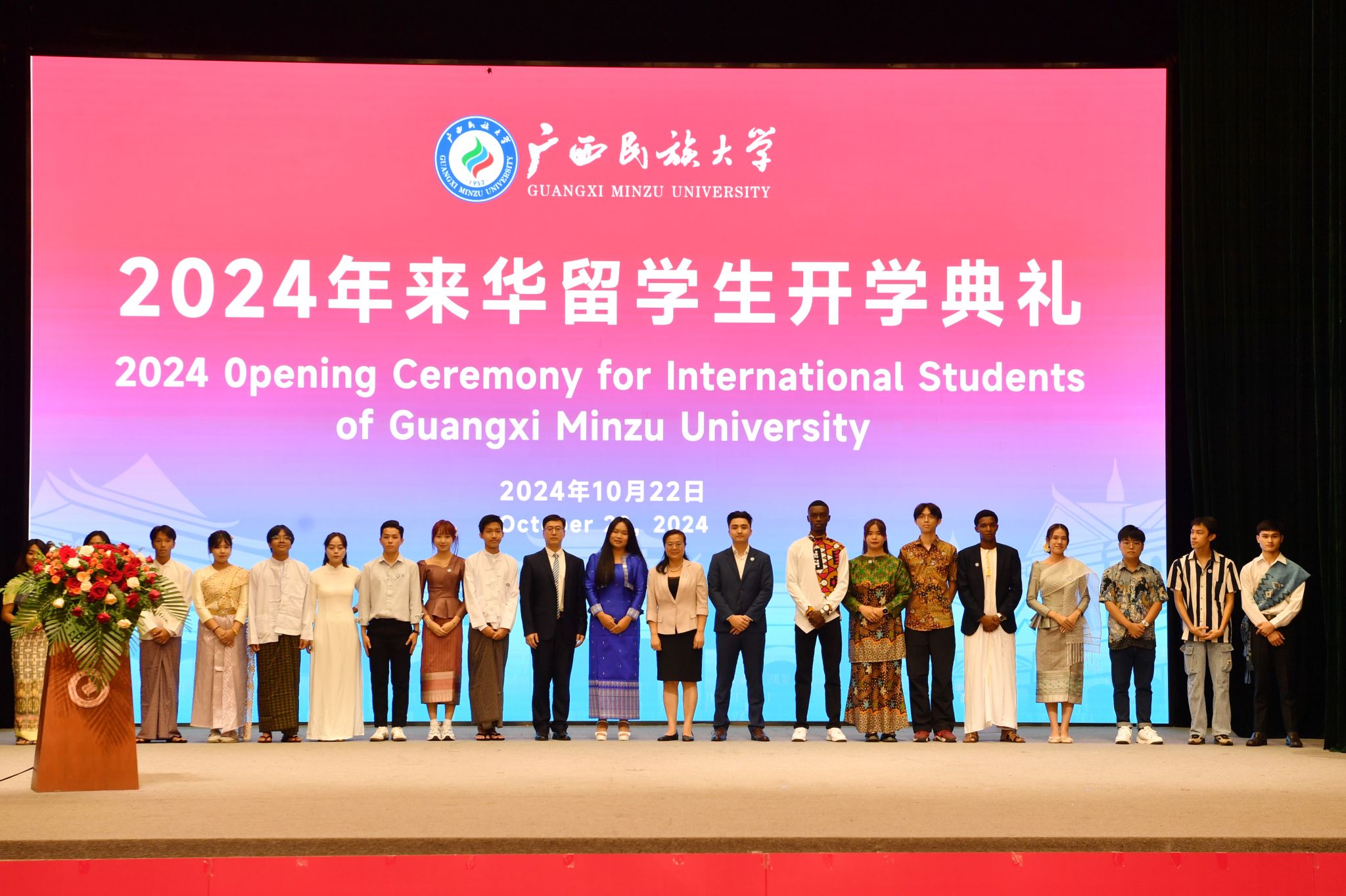 【大学生通讯社报道】10月22日下午,广西民族大学2024年来华留学生开学典礼在相思湖校区礼堂举行。广西民族大学校长韦仕珍,泰国驻南宁总领事馆总领事彬嘉玛·塔维她雅浓,柬埔寨驻南宁总领事馆总领事唐肃安,老挝驻南宁总领事馆总领事翁巴努·西巴色,缅甸驻南宁总领事馆总领事凯素林,越南驻南宁总领事馆领事范维平,马来西亚驻南宁总领事馆副领事法拉·伊丽莎等出席。副校长高兴宇主持。