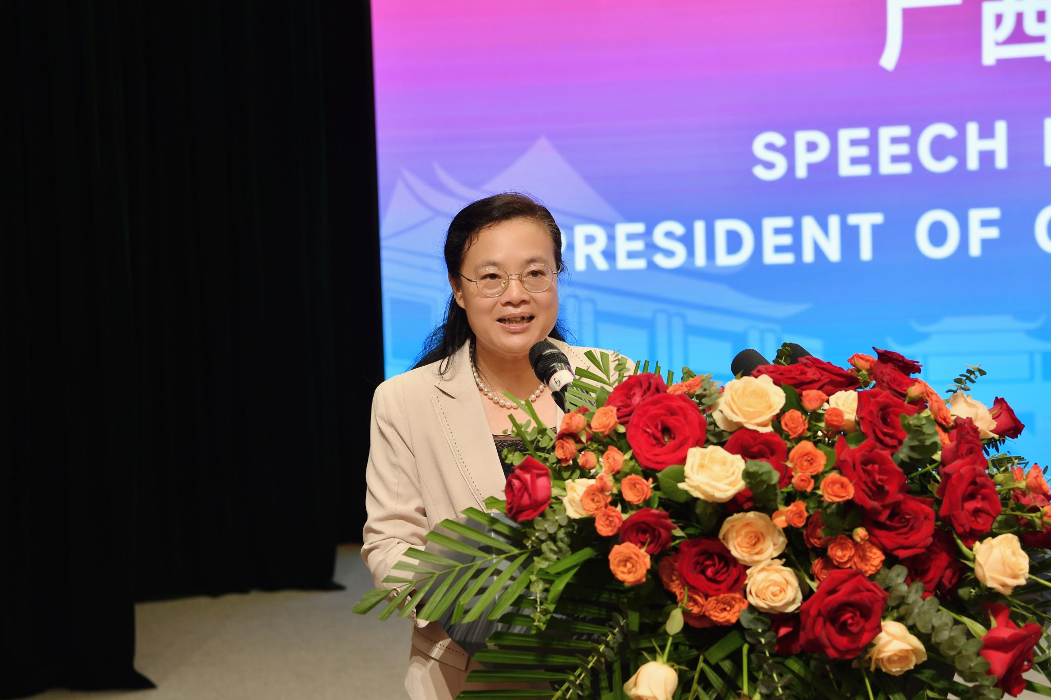 韦仕珍介绍学校国际化办学成效,她希望同学们充分利用学校的学习资源,努力学习中华文化和专业知识,不断提高自身综合能力,积极参与学校组织的各类活动,体验中华优秀传统文化,感受现代中国生活。严格遵守中国的法律法规,秉持相互尊重的心态来感知多元文化魅力,培养跨文化沟通能力,成为具备全球视野、开放胸怀和交流意识的高素质人才和文明交流互鉴的传播者、推动者,让文明交流互鉴成为增进中国与世界各国人民友谊的桥梁、推动人类社会进步的动力、维护世界和平的纽带,为促进民心相通、推动构建人类命运共同体贡献青春力量。