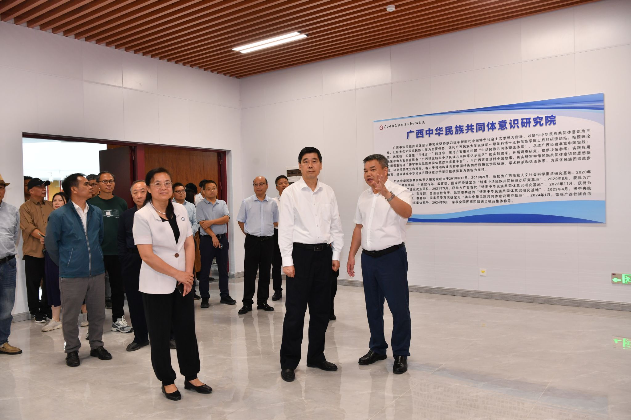 调研组先后到广西民族大学思源湖校区化学化工学院多个重点实验室进行深入调研,到相思湖校区东盟文化交流中心和广西中华民族共同体意识研究院进行实地参观,了解广西中华民族共同体意识研究院的成立背景、发展历程及取得的研究成果,学校在石化化工领域的科研项目、实验室建设以及科技成果转化等方面的工作情况,东盟文化研究成果、与东盟国家的合作交流情况等。