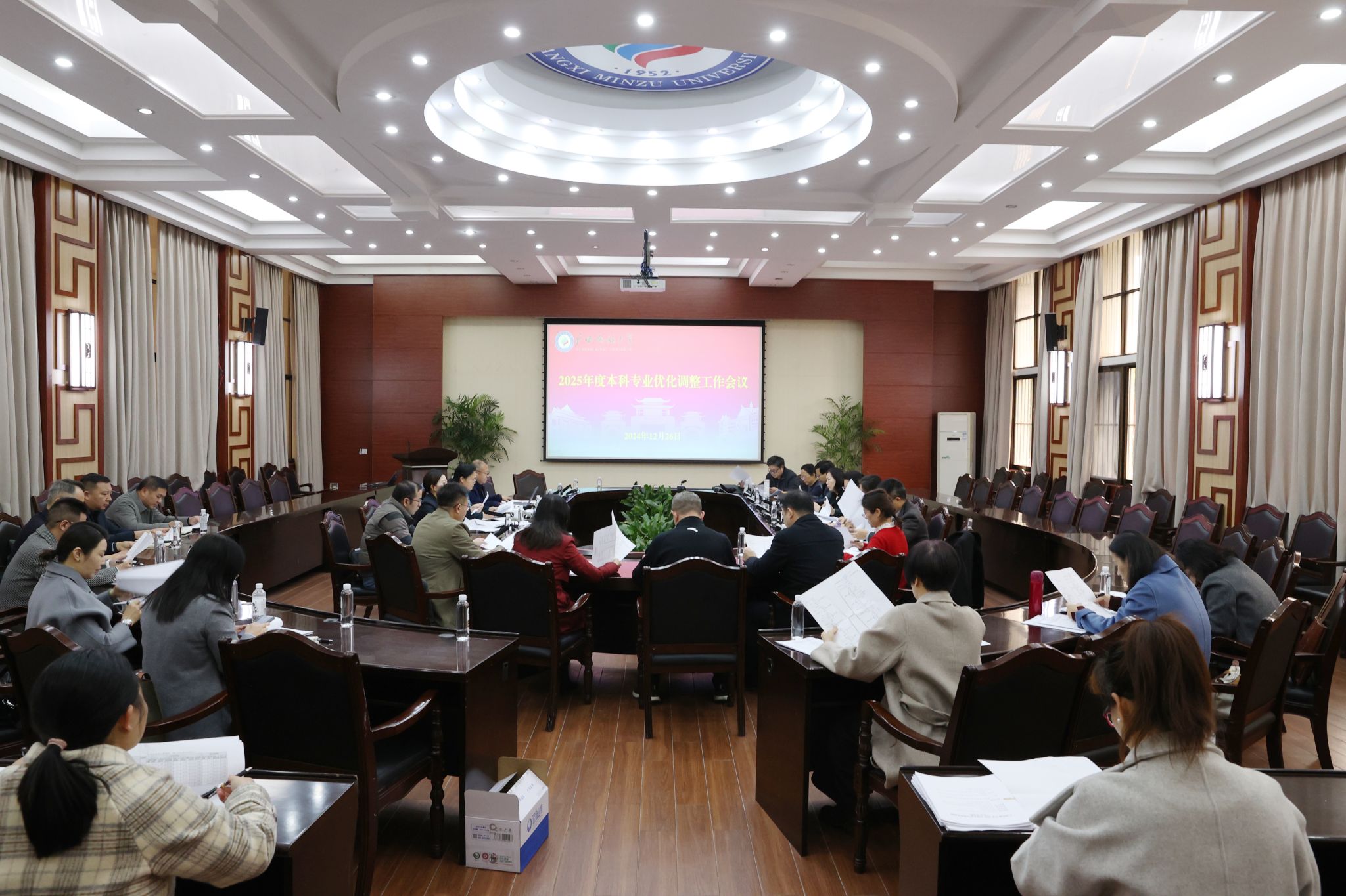【大学生通讯社报道】12月26日下午,广西民族大学召开2025年度本科专业优化调整工作会议。学校党委副书记、校长韦仕珍出席会议并讲话。学校党委常委、副校长姜明国主持会议。