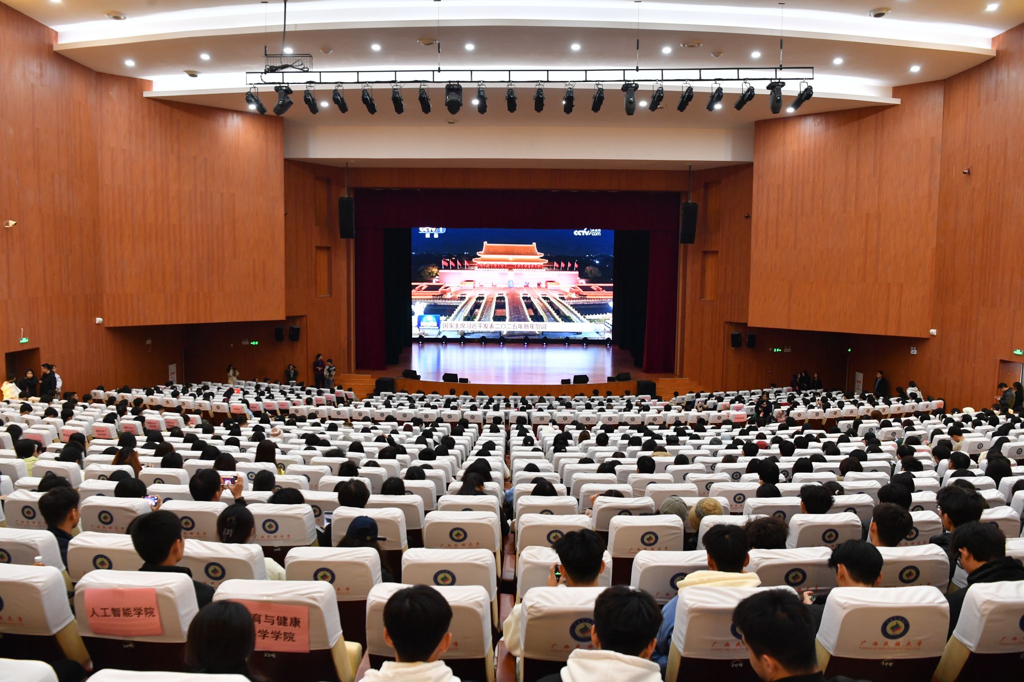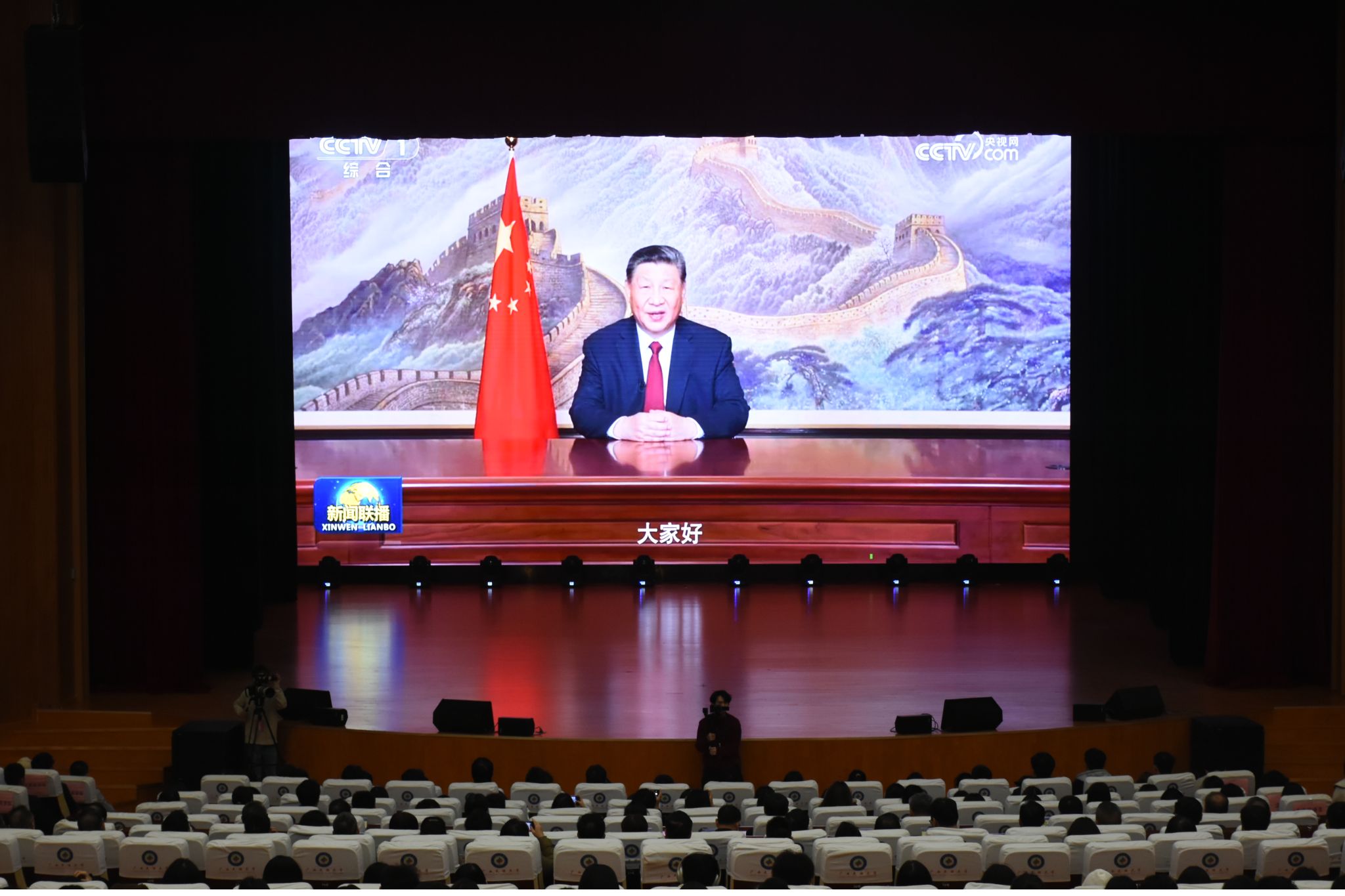 【大学生通讯社报道】国家主席习近平于今晚7时通过中央广播电视总台和互联网,发表二〇二五年新年贺词。广西民族大学校领导和各族师生代表在思源湖校区大学生活动中心礼堂集中收看直播。
