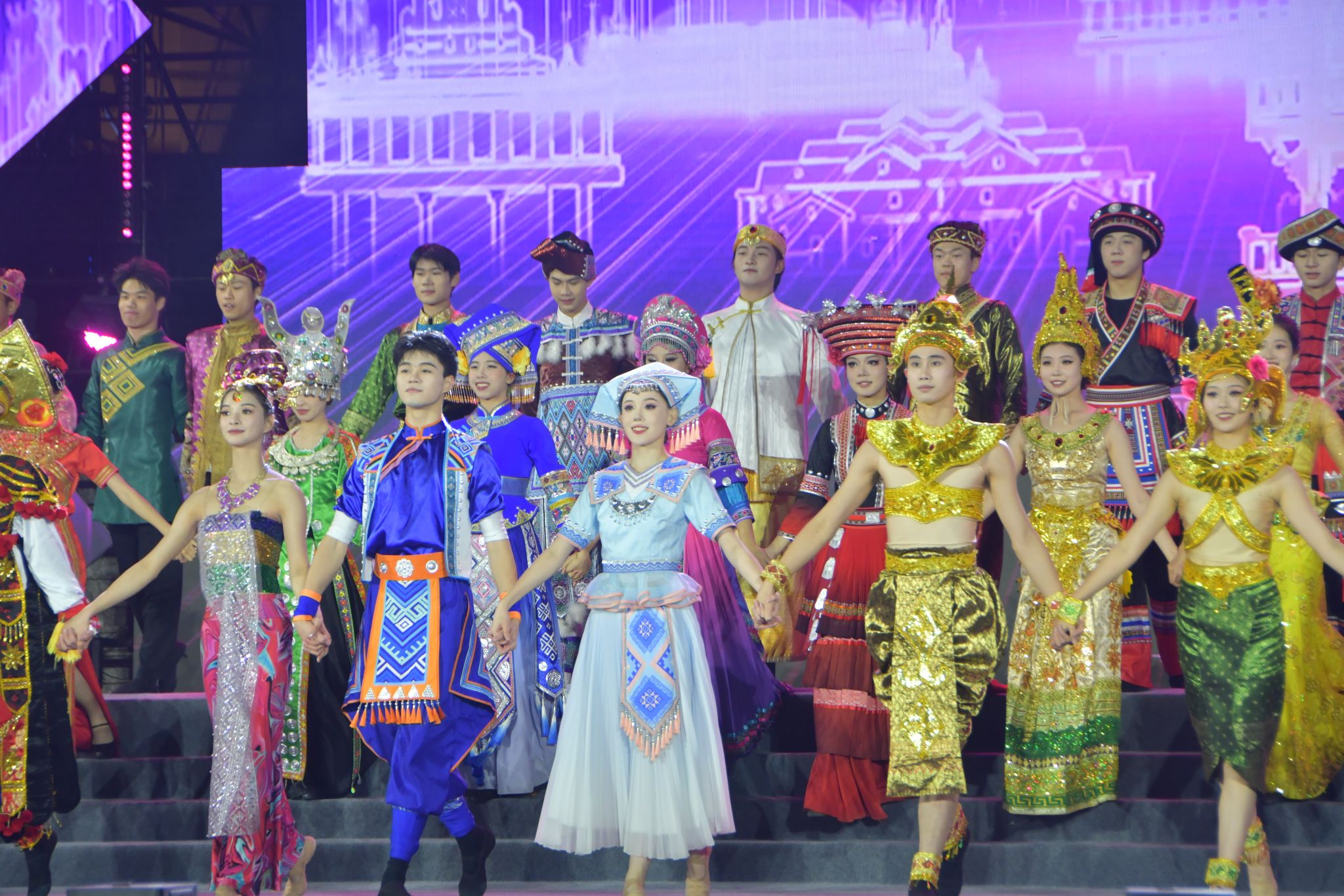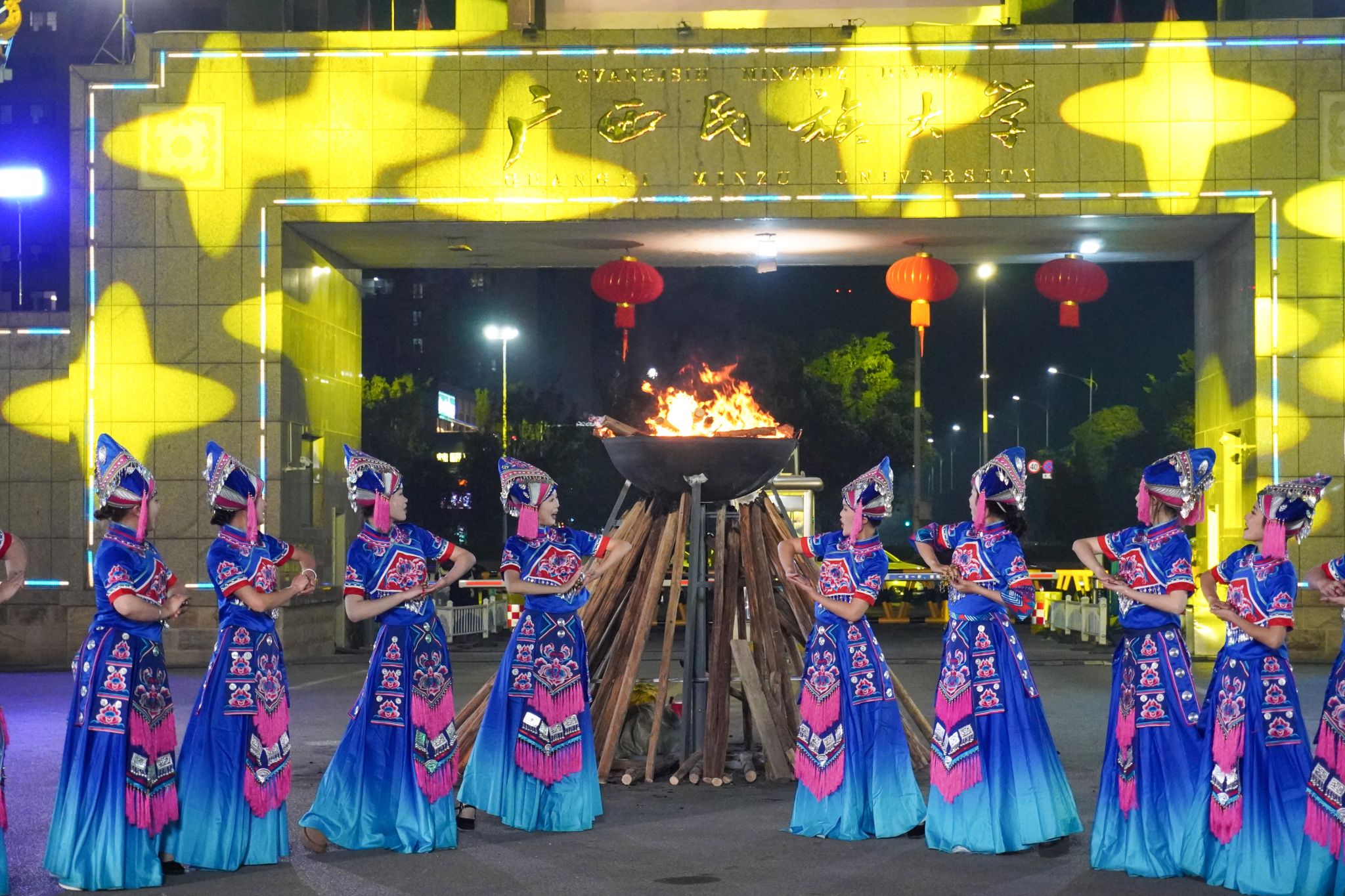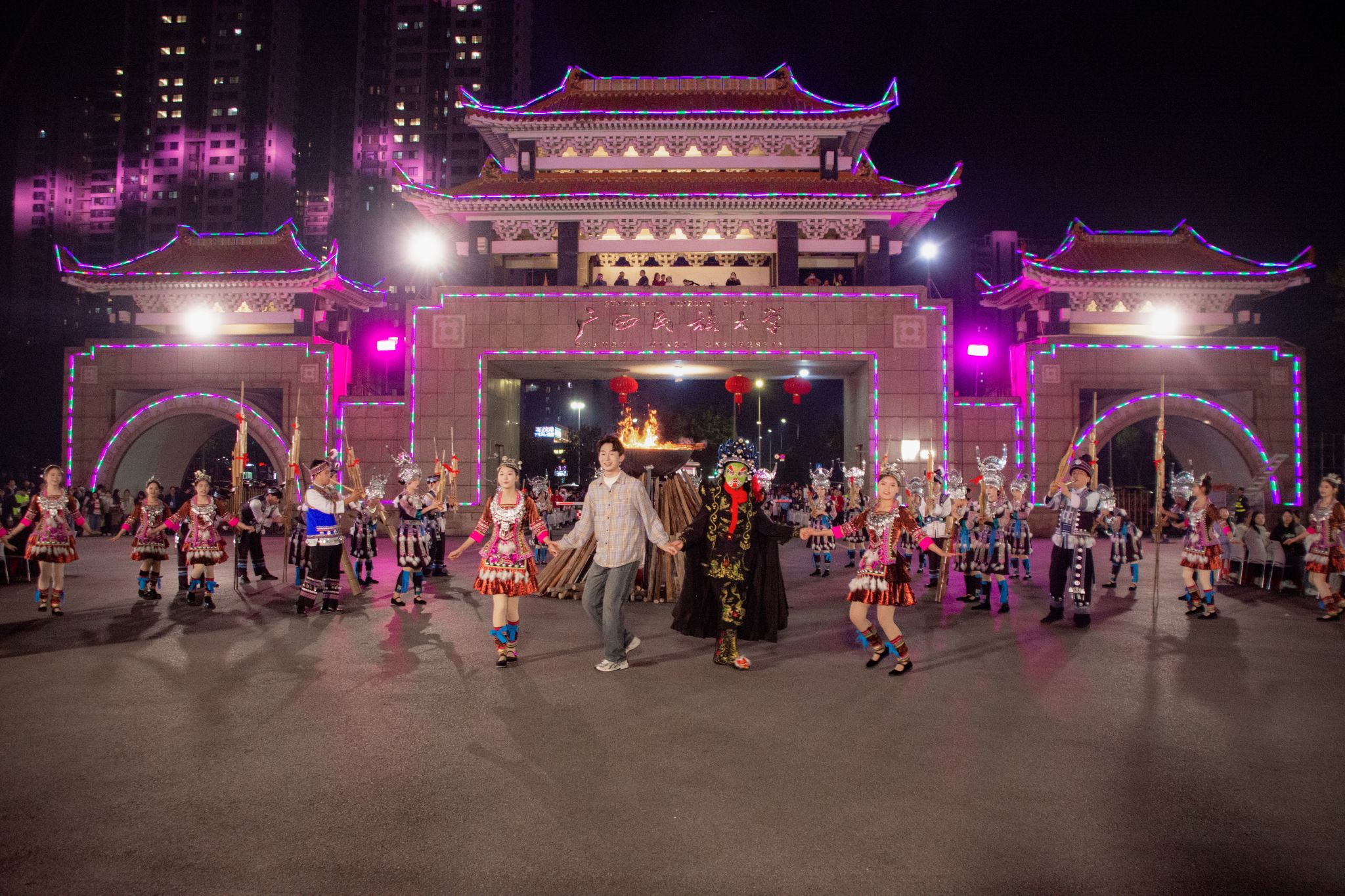 晚会以“石榴花开,丝路欢歌”为主题,分序篇“青春当燃、花‘young’跨年”和“丝路欢歌、山海奇遇”“滚烫的青春”“‘桂字号’响起来”“你好·2025”四个篇章。广西民族大学作为联合出品单位之一,各族师生把民族艺术、东盟文化、非遗展演展示、智能科技等融入多彩的节目中,配合学校创新创业实践项目“创艺街圩”,为观众带来了一场视觉听觉盛宴和独特体验。(初审:潘之铭 复审:荣子卿 终审:孙寿媚)