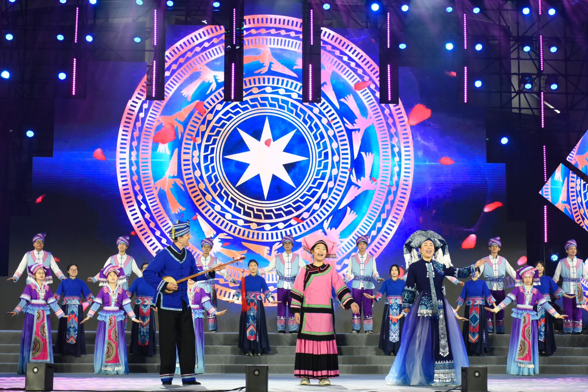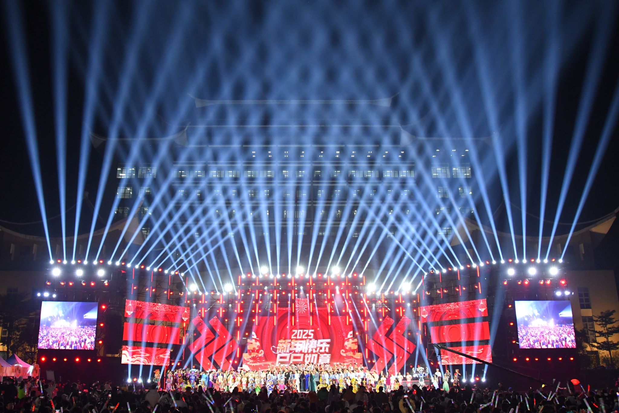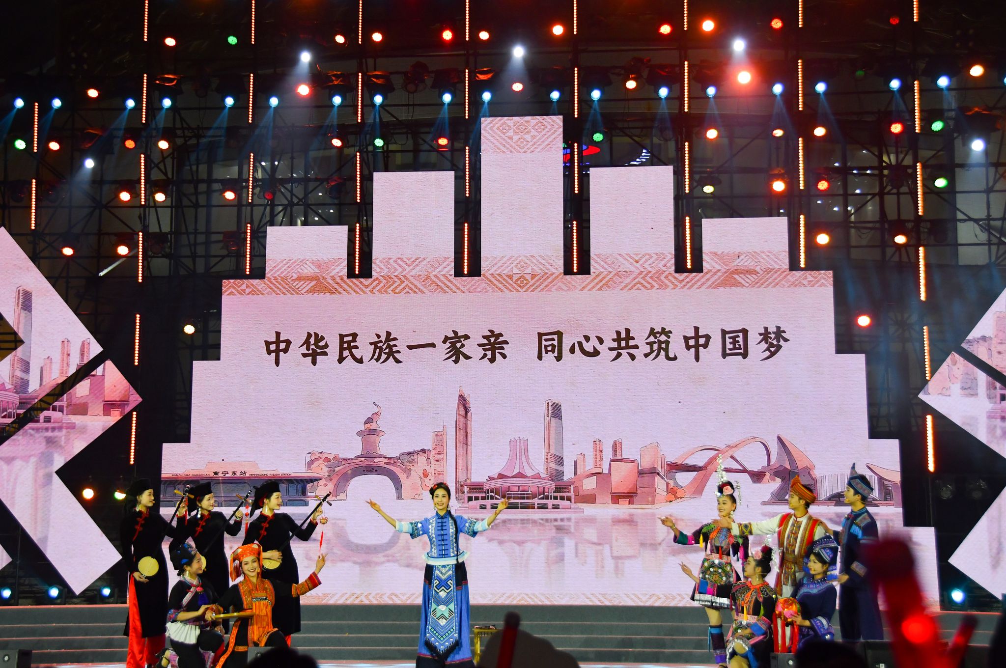晚会以“石榴花开,丝路欢歌”为主题,分序篇“青春当燃、花‘young’跨年”和“丝路欢歌、山海奇遇”“滚烫的青春”“‘桂字号’响起来”“你好·2025”四个篇章。广西民族大学作为联合出品单位之一,各族师生把民族艺术、东盟文化、非遗展演展示、智能科技等融入多彩的节目中,配合学校创新创业实践项目“创艺街圩”,为观众带来了一场视觉听觉盛宴和独特体验。(初审:潘之铭 复审:荣子卿 终审:孙寿媚)