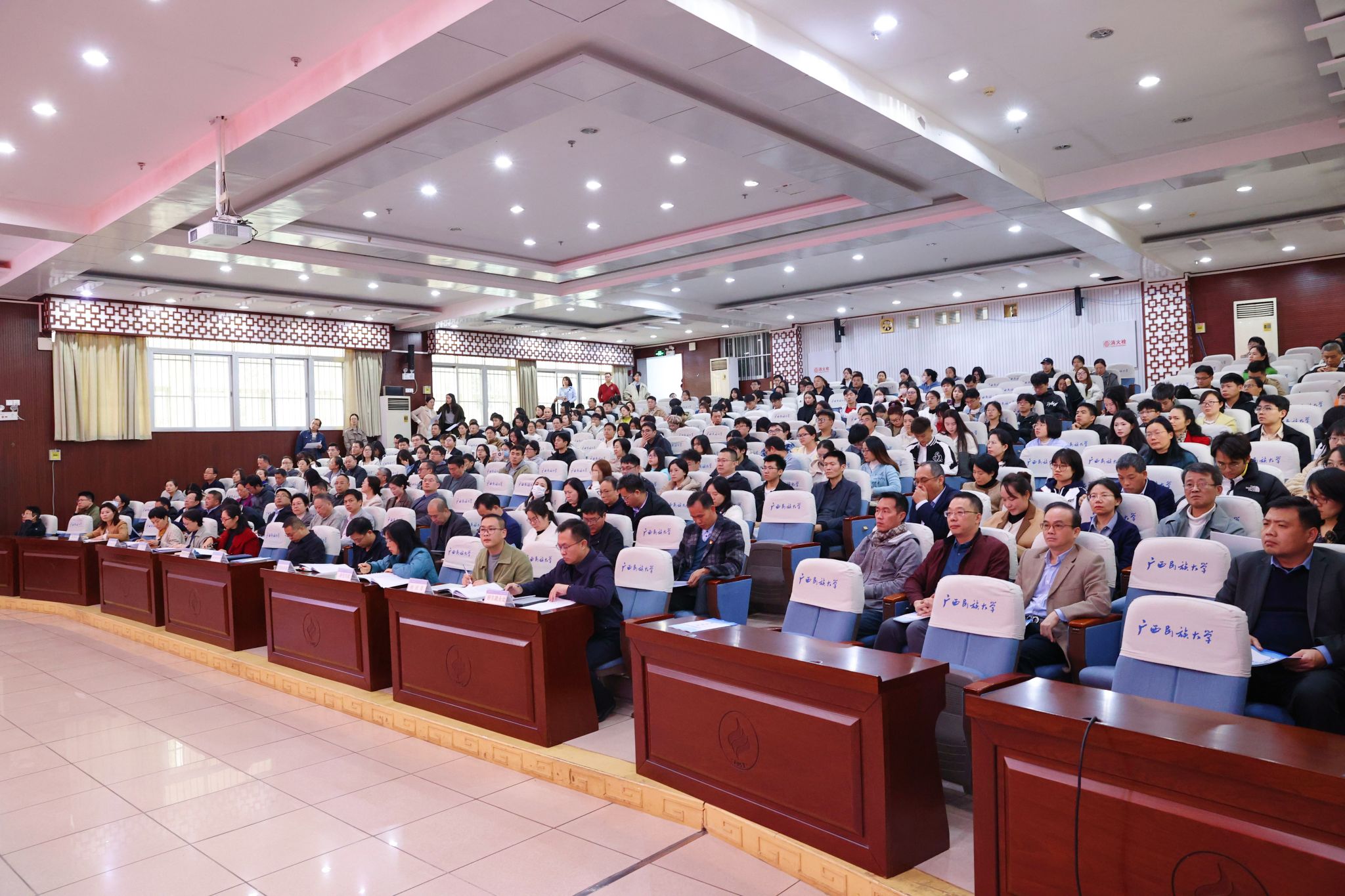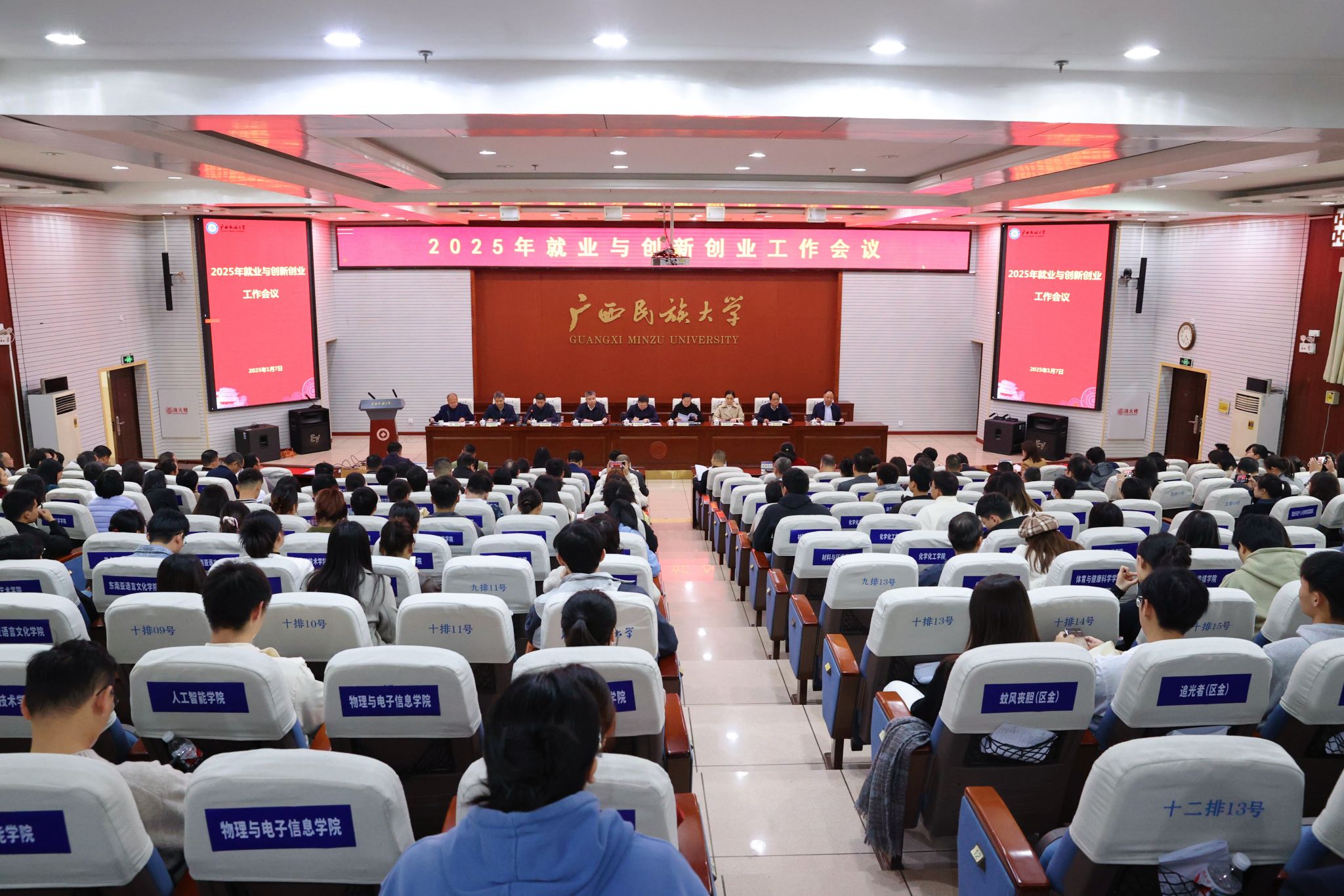 1月7日下午,广西民族大学2025年就业与创新创业工作会议暨2025年中国国际大学生创新大赛选拔赛启动仪式在科技楼报告厅举行。学校党委书记卞成林,党委副书记、校长韦仕珍,校领导陈铭彬、韦雪芳、邓国彬、蔡高根、吕俊彪、何立荣、姜明国等出席会议。有关职能部门负责人及各学院师生代表与会。会议由学校党委副书记邓国彬主持。