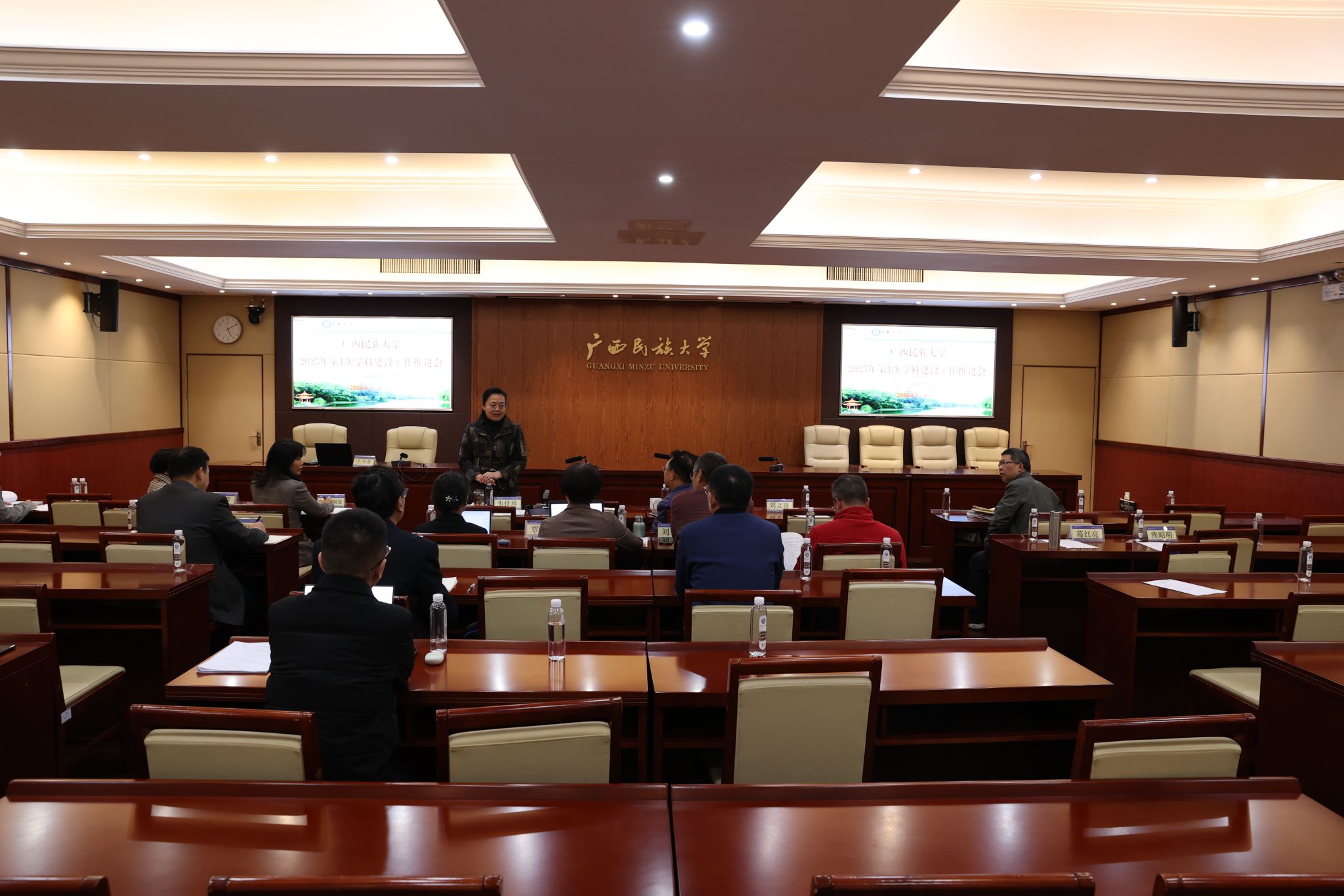 【大学生通讯社报道】1月8日,广西民族大学校长韦仕珍在办公楼212会议室主持召开2025年第一次学科建设工作推进会(博士点申报推进会)。发展规划处负责人,拟申请新增博士学位授权点牵头建设学院院长、学科带头人、学术骨干和校外专家参加会议。