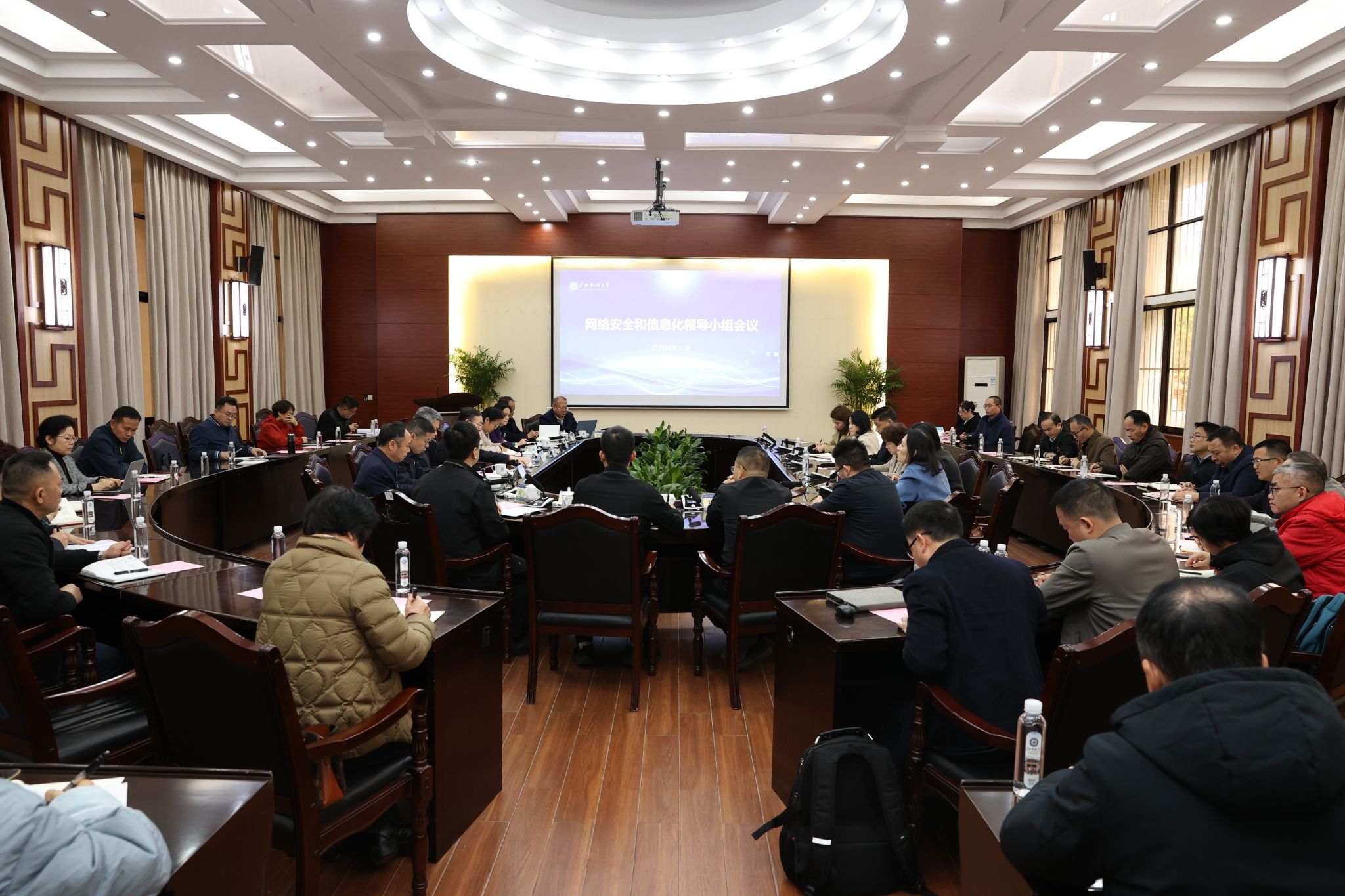 【大学生通讯社报道】3月6日上午,广西民族大学召开网络安全和信息化领导小组会议,校党委书记卞成林,校长韦仕珍出席会议并讲话,党委副书记邓国彬主持会议。学校领导及各部门负责人参加会议。