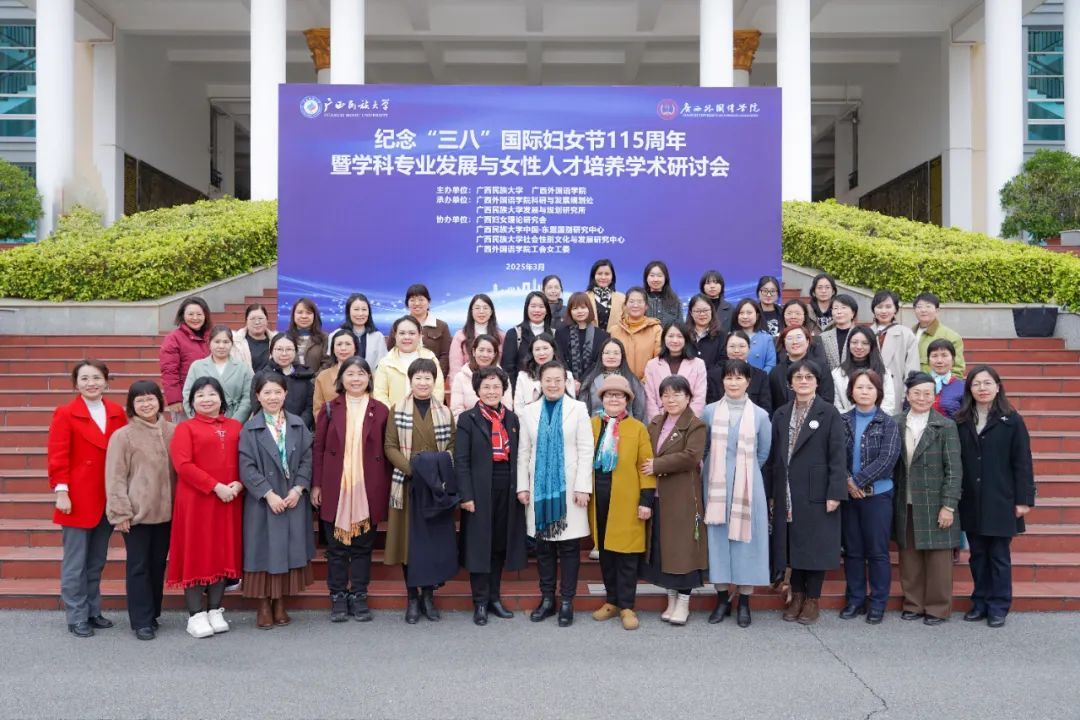 3月8日,由广西民族大学、广西外国语学院联合举办的“纪念‘三八’国际妇女节115周年暨学科专业发展与女性人才培养”学术研讨会在广西外国语学院举行。广西民族大学校长韦仕珍、广西外国语学院执行校长吕玲丽出席研讨会并致辞。广西外国语学院创校董事长朱桂玲,广西外国语学院教学督导团总督导宋亚菲,广西农业职业技术大学校长李向红,广西妇女干部学校校长万洁等出席研讨会。