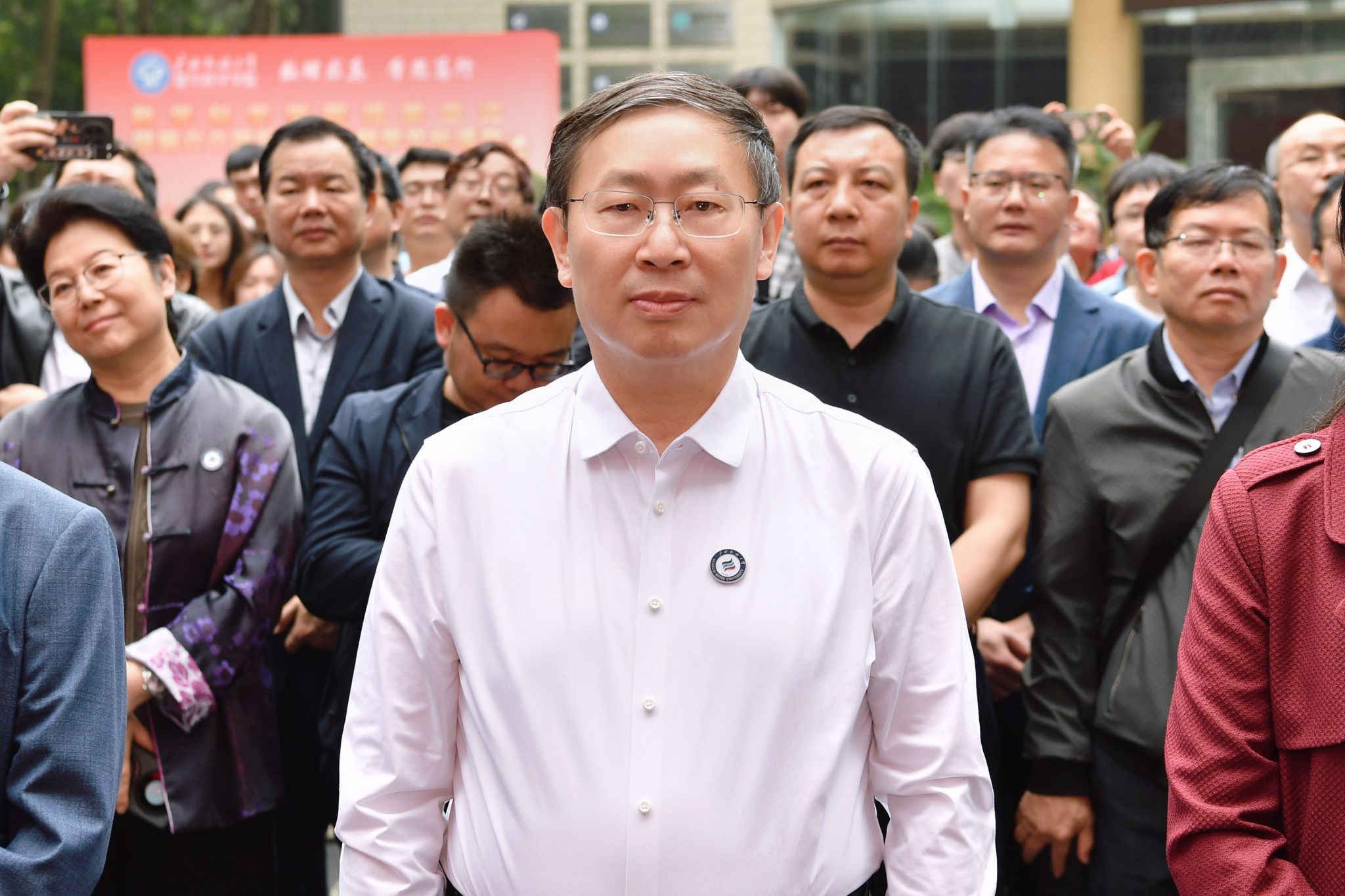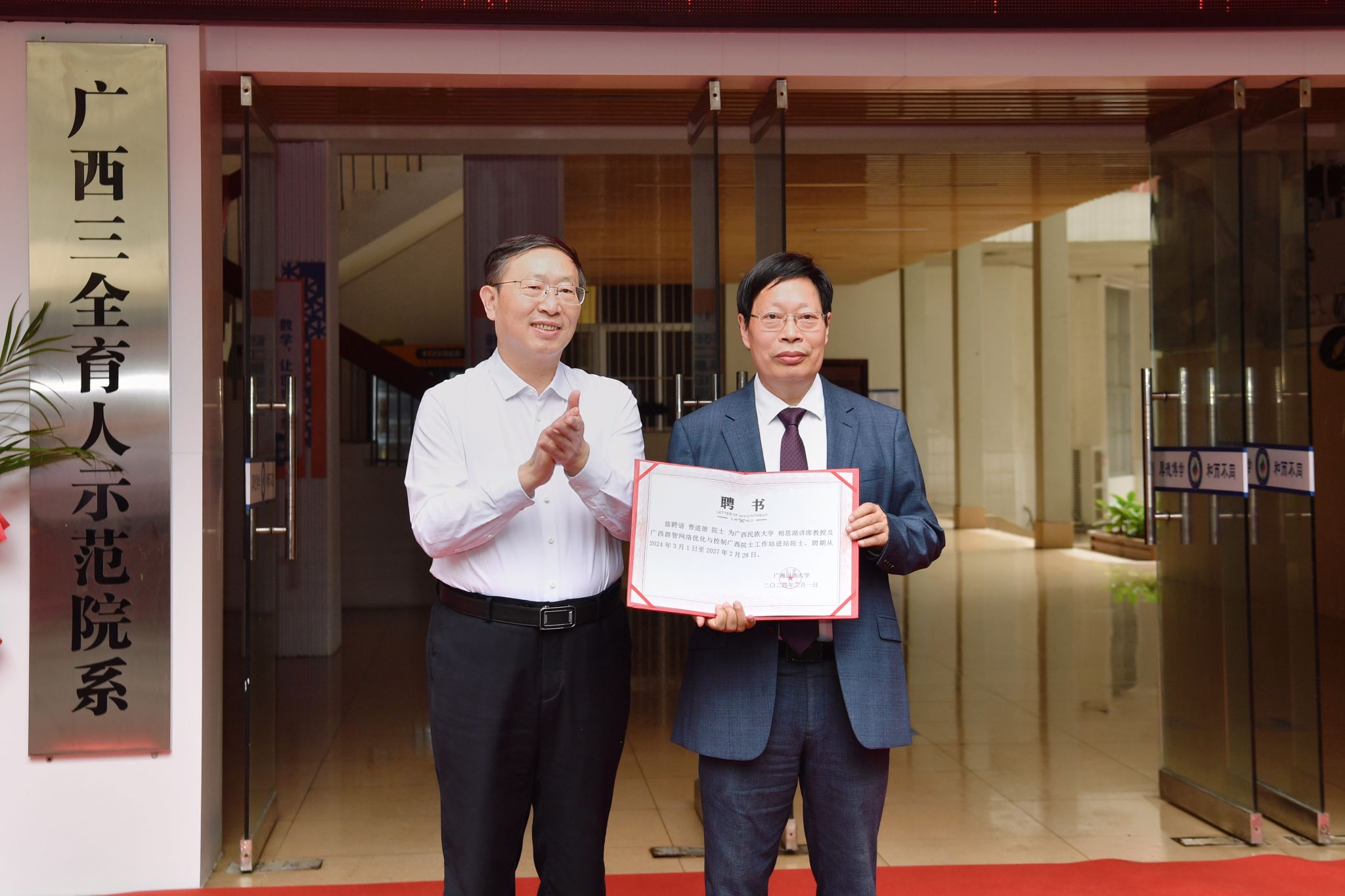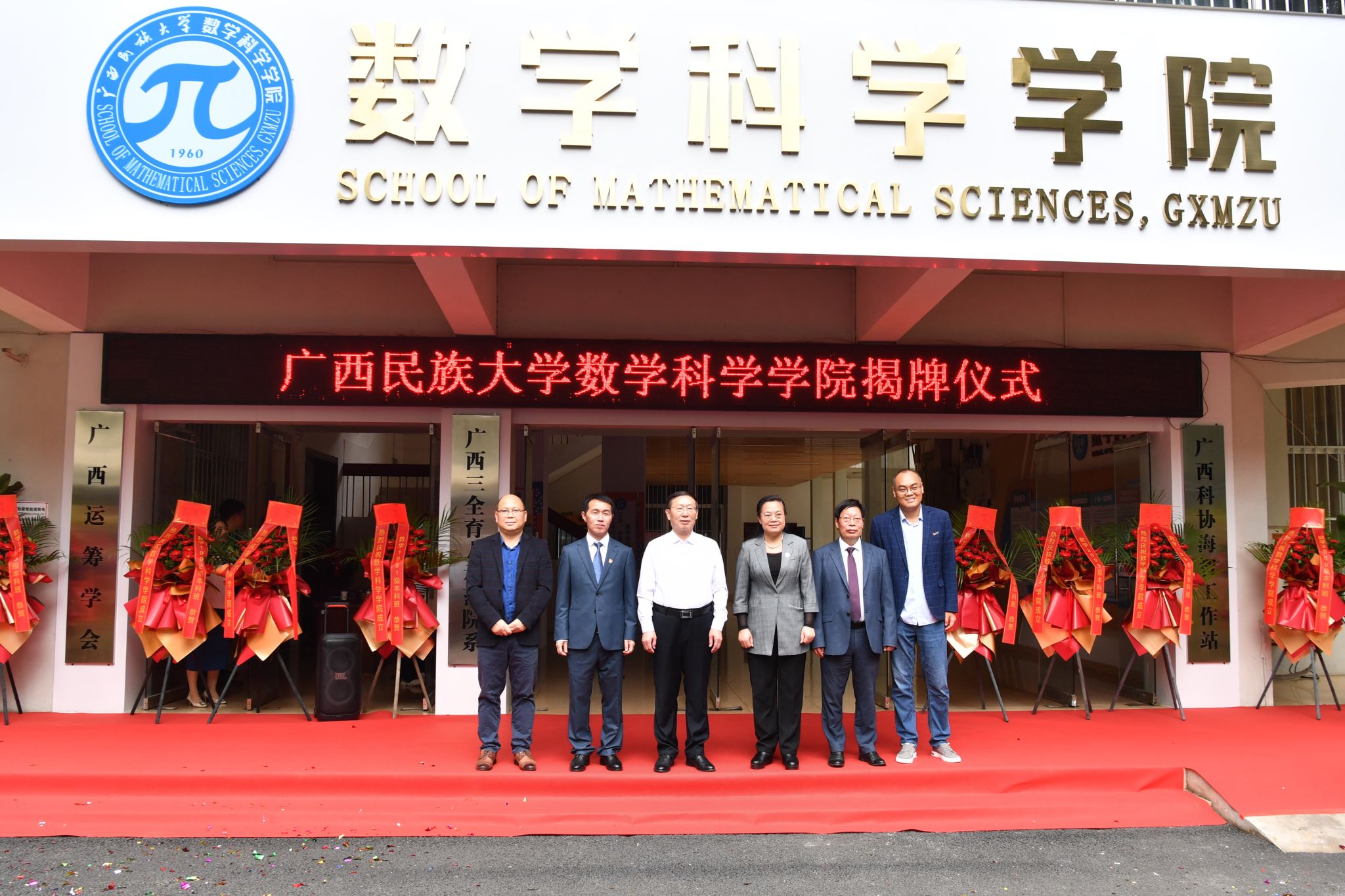 卞成林、韦仕珍、曹进德、黄在堂及数学科学学院党委书记唐国吉、院长刘恒等共同为数学科学学院揭牌。