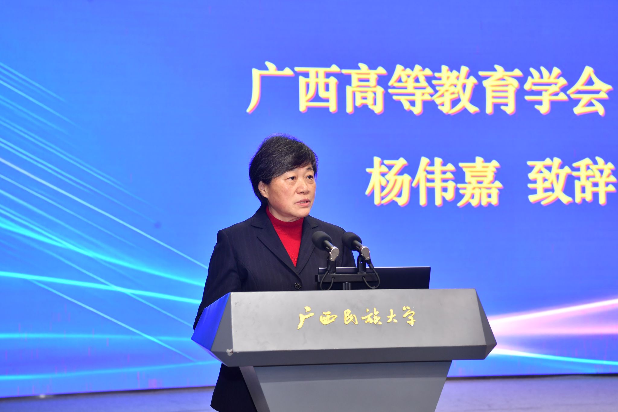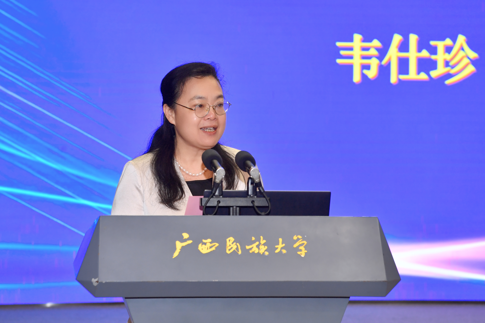 韦仕珍向各位领导、专家和参赛教师的到来表示热烈欢迎,她表示,广西民族大学高度重视教师教学能力提升,始终深耕“三位一体”创新培育体系,学校将以承办此次大赛为契机,深化教育教学改革,为建设特色鲜明的高水平现代化综合大学注入新动能。期待各位教师在相思湖畔这片赛场上,秉持育人初心,取得优异成绩。